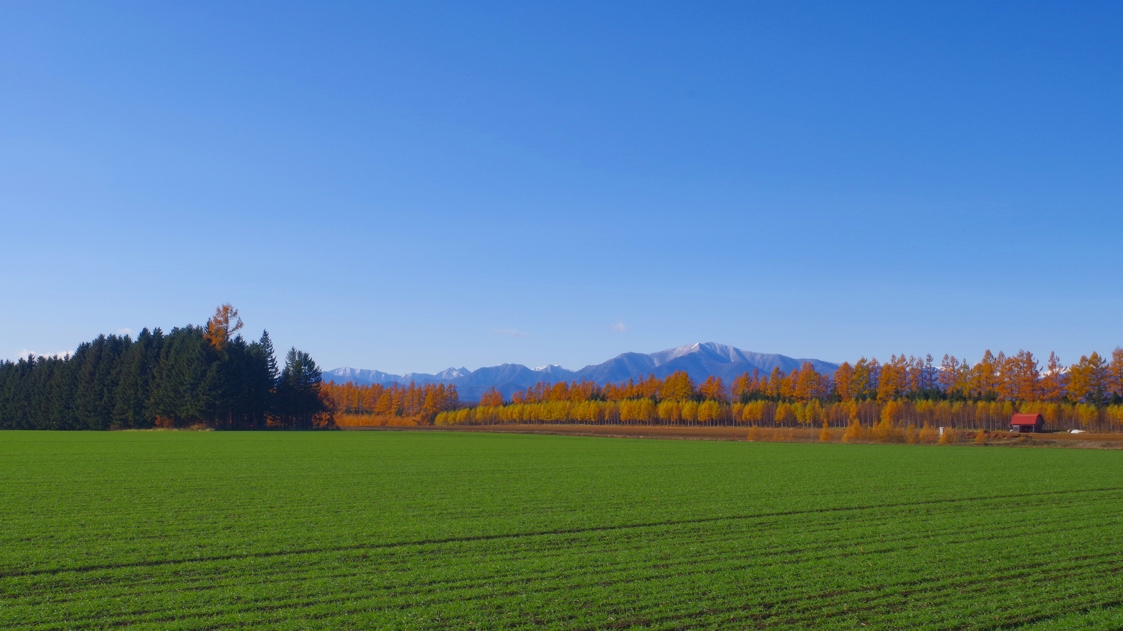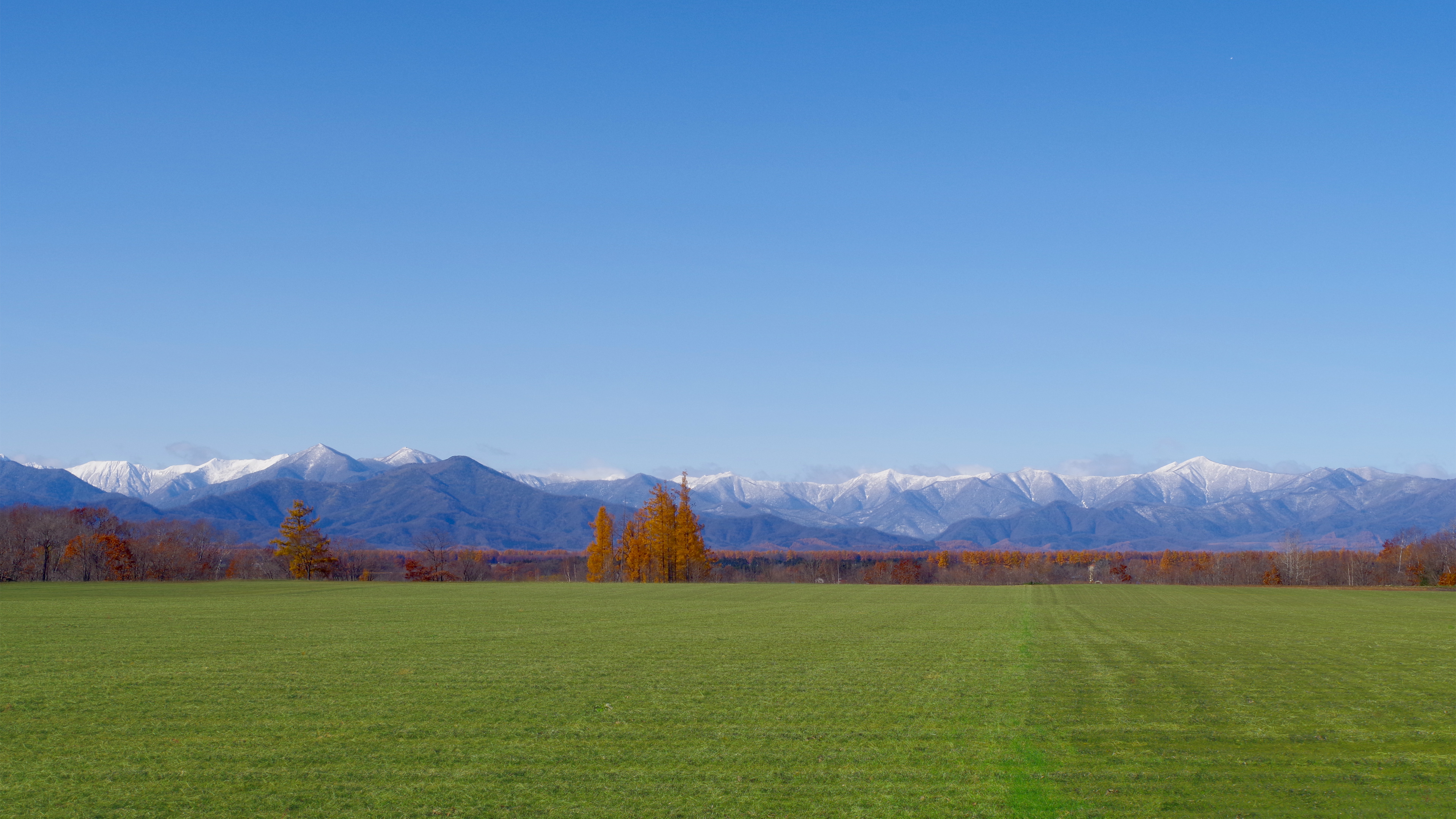 紅葉の更別から冠雪の幌尻岳