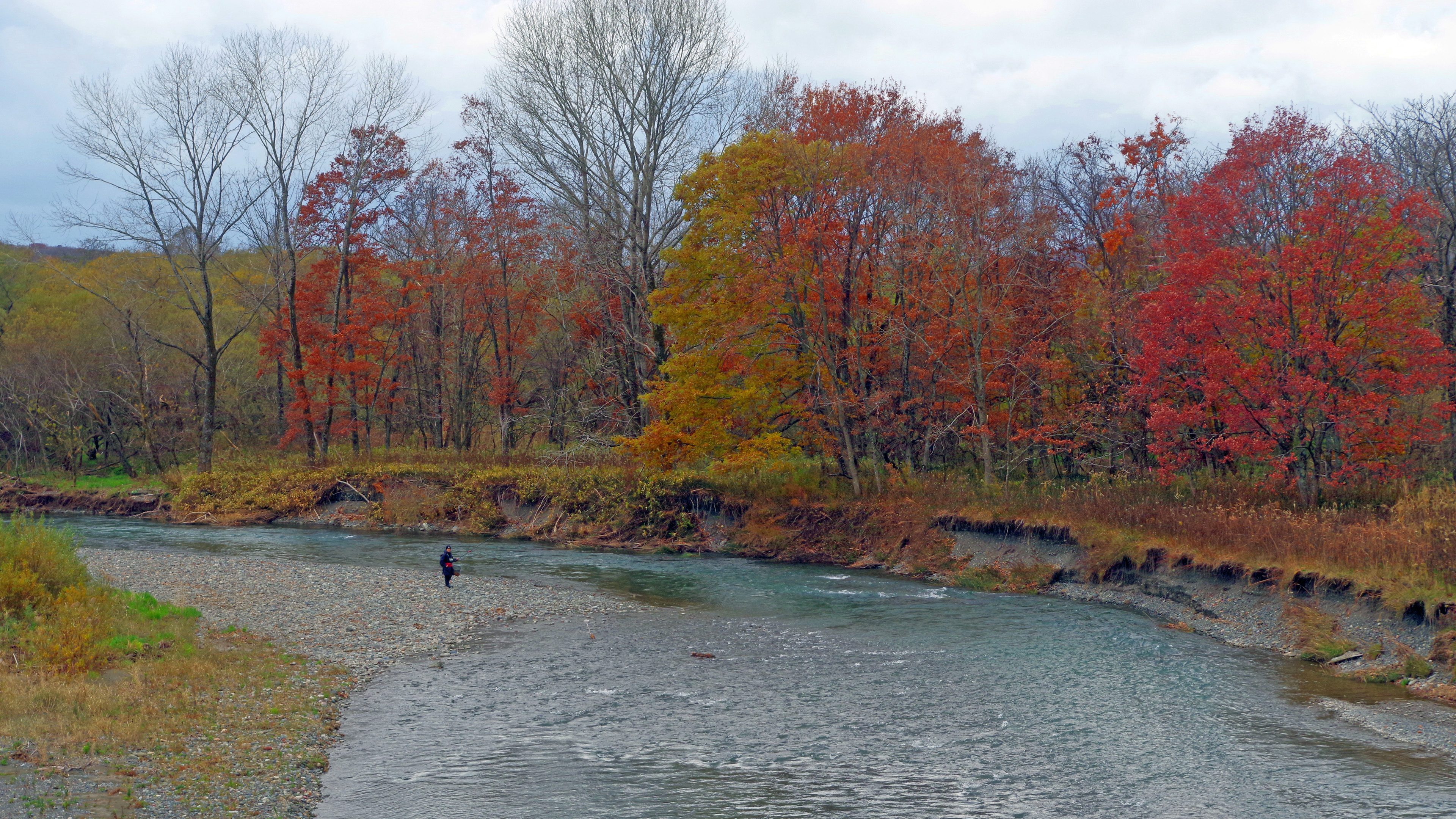 紅葉の日高の渓の釣り