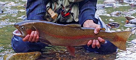 北海道では広大な大地を流れる多くの河川で、大型の野生化した俊敏かつ狡猾なニジマスの釣りを楽しむことができます。釣って楽しく食べても美味しいニジマスは、北海道の地元の渓流釣り師たちのメインターゲットとなっています。しかし、野生化したニジマスは、イワナやヤマメ等の一般の渓魚とは異なる性質を持っていて、本州での渓流釣りの概念が余り役に立ちません。本稿は、始めて北海道を訪れる釣り人に役に立つ情報を中心に記述しています。 なお、湖沼においては、筆者はレイクトローリングを楽しんでおり、湖沼編の岸釣りのマニュアル作成の予定はありません。 1.北海道のニジマスとは ニジマスは小さな虫を主食とする渓魚のため、ルアーフィシングよりもフライフィッシングの方が釣り易く、圧倒的に釣果が上がります。そのため、本マニュアルは、ルアーだけでなくフライについても記述しています。 1-1.北海道のニジマスと本州の渓魚との相違 ニジマスと言えば管理釣り場や釣り堀の魚をイメージされるかも知れませんが、養魚場育ちのニジマスと北海道の野生化したニジマスは全く別の生き物と考えるべきです。 管理釣り場のニジマスを遥かに凌駕するスピードとパワーに加え、狡猾さも兼ね備えています。一方で、本州のイワナやヤマメほどの警戒心は無く、数m離れた場所に釣り人が立っていても、活性が上がると平気で喰い付いてくるという大胆さも有ります。また、記憶力が良く、ルアーやフライに対して非常にスレ易いのも特徴です。 更にニジマスは、河川内においては、大型になっても虫を主食としているため、イワナやヤマメと異なる時間帯に活性が高くなり、また、ルアーに対する反応も劣ります。虫を模したフライフィッシングの方が有利なのはこのためです。湖沼・ダム湖では、ワカサギなどを捕食していて、河川内よりも魚食性が高く、ルアーにも良く反応します。 1-2.北海道民のメインターゲット 適度に狡猾で俊敏なため釣って楽しく、また、食べても美味しいため、北海道民の渓流のメインターゲットとなっています。道内の淡水の釣り師にとって、50cm超えの大ニジマスを釣り上げる事が最大の目標となっています。筆者自身も、北海道釣行を始めた当初は主に大アメマスを狙っていましたが、次第にニジマスのファイトに魅了される様になり、今では大ニジマスを釣り上げる事が一番の目標となっています。 決められた訳ではありませんが、概ね、30cm以下を小物・チビマス、30cm台を普通・並み、40cm台を良型、50cm台を大物・大ニジマス、60cm台をモンスター、70cm以上をバケモノなどと呼ぶ人が多い様です。そして、50cm超えのニジマスを、総じてスーパーレインボーと呼ぶ様です。