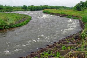 4-1-4.冬季:11月中旬〜5月中旬 筆者はこの時期の北海道で釣りをした事がなく、状況は良く判りません。ただ、地元の釣り師たちからは、以下の様な話を良く聞いています。 ・11月中旬ころから釣り人が急激に減り、また、魚たちは冬に備えて餌を旺盛に捕食し始める事から、 スレ切っていた大ニジマスたちが荒食いを始め、大型のニジマスの釣れるチャンスとなる。 ・12月中旬〜4月初頃までは、凍結や低活性でほとんど釣りにならない状況が続くらしい。 ・4月中旬〜5月中旬まで、雪代の増水と適度な濁りで、大型のニジマスの釣れるチャンスとなる。 4-2.釣り場 この項目では、釣り人の集中による釣り場の荒廃を防ぐため、大まかな河川の案内のみに留めます。 4-2-1.北海道内ではほぼどこでも釣れる 道内のほとんどの河川でニジマスの自然繁殖が確認されています。ただ、平均水温や水質、餌の状況、他魚種との競合の状況などにより、河川内の個体数には大きなばらつきがあります。道北や知床半島の小河川では、水温の低さからニジマスの個体数は少ない様です。道央の千歳川、支笏湖、静内川、道南の島崎川、道東の士幌川、標津川などでは、ブラウントラウトが優位となっていて、ニジマスの魚影は無いか薄い様です。 メインの釣り場となるのは道東の十勝地方や釧路地方となります。道央や道北・道南でもニジマスは釣れていますが、道東ほどの人気は無い様です。中でも十勝平野はニジマスの定着率が高く、ニジマス天国と言われています。ほぼ全ての河川で、河口付近から源流部まで、ニジマスが生息しています。また近年は、最源流部のオショロコマまでもがニジマスに置き換わり、生息域を拡大しつつあります。 道東の野生の大ニジマスで有名な河川としては、音更川、猿別川、札内川、利別川、十勝川、西別川、釧路川、常呂川、網走川、湧別川などが有ります。放流釣り場としては、阿寒川や渚滑川などが有ります。 4-2-2.猛暑下・厳寒期・豪雨直後は湧水の河川 北海道の広大な平野部には、湧水を水源とする河川が多く存在していて、猛暑でも水温は低く、厳寒期も凍結せず、豪雨でも殆ど濁りません。そのため、年間を通じて釣りが可能なだけでなく、餌が安定して豊富、かつ生育に適した水温が保たれるため、魚影が濃く、また超大物が育ちます。 代表的な湧水の河川としては、道東の西別川、猿別川、当縁川、雪裡川、道南の漁川、などがあります。他にも、札内川、斜里川、常呂川、網走川、サロベツ川、天塩川、忠別川、興部川、尻別川などの源流部や支流に見られます。 4-3.釣れる日、時合い 4-3-1.一般的な時合いの考え方 野生化したニジマスの時合いは、本州のイワナやヤマメとは全く異なります。朝早く出かければ釣れると言うものではありません。むしろ、真昼間の気温の急上昇する時間帯に、大型の良く釣れることが多くあります。一般的な時合いの考え方は、「3-1. 定点観測の結果」、「3-2 釣果と気温などとの関係」を参照して下さい。 4-3-2.大増水の後は大型の大チャンス 豪雨による強い濁りを伴った増水の後に、渓水が緑色を帯びて来た瞬間に、大型のニジマスが連発することが良くあります。増水で餌を取れなかった魚たちは空腹であり、透明度50cmほどのとても釣れそうもない強い濁りでも、しつこく何度もルアーやフライを流すと喰い付いてきます。増水の濁りが長期に渡るほど、一大チャンスとなり得ます。 2016年8月末に、北海道に3つの台風が次々と上陸し、音更川では大増水による強い泥濁りが1ヵ月程も続きました。1ヵ月後の10月7〜9日にかけて、3日間で50cm超え4尾、40cm台7尾を釣り上げました。どんなルアーでも簡単に良く釣れ、しかも、大物・良型ばかりがヒットし、小物が殆ど釣れませんでした。