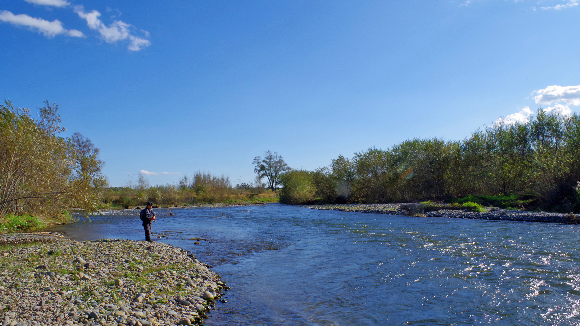 1-3.大物の魚影は想像以上に濃い 道内の有名河川では釣り人が非常に多く、ルアーやフライにスレているため、50cmを超える大物を釣る事は非常に困難です。しかしながら、スレて釣れないだけであり、大物は随所に沢山泳いでいます。ルアーやフライで、尺程度までのニジマスしか釣れなかった直後に、餌釣り師がやって来て、同じ場所で大ニジマスを連発して釣り上げるのを何度も目撃しています。 特に有名な音更川や猿別川などでは、近年、釣り人が増え過ぎ、ルアーフィッシングではほとんど何も釣れない状況が発生しています。底付近をトレースできるニンフフライフィッシングで、なんとか釣果を見る事はできますが、大型を釣るのは非常に困難になっています。そんな状況下でも、餌釣り師たちは大ニジマスを釣っていて、魚影は間違いなく濃いのです。 2.注意点 2-1.禁漁区・禁漁期間 北海道ではニジマス・ブラウントラウト・ブルックトラウト・アメマス・オショロコマに関して、一部の放流釣り場などを除き、禁漁区や禁漁期間の規制は有りません。ほとんどの河川で、1年中、釣りを楽しむ事が可能です。 一方で、シロザケ・カラフトマス・サクラマスについては、一部の調査河川を除き、河川内での釣りは禁止されていて、厳しい罰則も適用されています。ヤマメについては、禁漁期間や禁漁河川の規制の有る場合がありますので、注意が必要です。詳しくは「北海道のフィッシングルール Rule & Manner」をご確認下さい。 2-2.キャッチ&リリース 北海道の多くの河川では、外来種のニジマス・ブラウン・ブルックは野生化し、自然繁殖しています。しかしながら、特にニジマスは食べても美味しいため、地元の餌釣り師を中心に多くの個体が持ち帰られています。そのため、人口の多い市街地に近い区域では、ほとんど魚影の見られない場所も存在します。そういった地域では、可能な限りキャッチ&リリースをお願いします。 一方で、キャッチ&リリースを徹底し過ぎると、自然淘汰が起こり、個体数が減少し始めます。加えて、魚の入れ替わりが無くなり、スレ過ぎて釣れなくなります。市街地から離れた地域では、適度に持ち帰り食べて頂く方が、魚影も保たれ、釣りの楽しさも増加します。 3.データ解析結果の紹介 3-1.2021年夏〜秋の定点観測の結果(2021年10月既出) 2021年8月から10月にかけて、十勝の音更川の同一ポイントで釣り続け、野生化ニジマスの動向を観察しました。釣法は全てアウトリガーニンフによるフライフィッシングでした。ポイントは中士幌町郊外にある下写真の1ヶ所だけであり、主に沈み石の前後十数mとなります。上流からの流れが土手にブツかり深く掘れていて、沈み石の前後で水深1m超となっています。(なお、このポイントは、2022年夏の豪雨時に渓相が大きく変わり、現在はありません。)