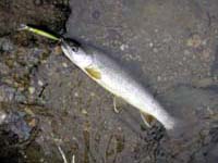 答えはすぐに判りました。表層の水温を計ってみると、なんと15℃もあったのです。例年なら5月の初旬ころであれば、水温は6〜10℃程度の筈です。どうやら、ここでも「早すぎる春」が魚達の行動様式を変えてしまっていた様子。実は先ほど出てきたウグイの稚魚を餌にして、ムーチング(生餌の泳がせ釣り)もやってみたのですが、3時間ほど放置していたにも関わらず、まるでさっぱりでした。