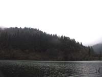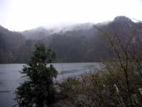 この日最初に訪れたポイントは、上記のBuuさんから教えて頂いた釣り場でした。ダム湖自体は前々から知っており訪れたこともあるのですが、広大なダム湖では細かな魚の付き場などの情報などは、地元の人に教えて頂かないとなかなか判りづらいものです。この日は自宅をお昼ころに出発しましたが、途中で花の写真を撮影していたりしてのんびりし過ぎたため、このダム湖に到着したのはもう午後の4時過ぎでした。あいにくの雨模様でしたが、背中に火の付いてしまった私には天候など全く関係ありません。 ![]() 残り時間も少ないため、まずはめぼしを付けておいたカケアガリのポイントに入りました。付近は土砂降りに近い雨で、水位も前週よりやや増水しています。水温は6℃、雨ですでに薄暗く、おまけに釣り人は全くいないという、これ以上は考えられない様な好条件です。遠投が効く様にと選んだヤマメルアー4cm緑をラインにセットし、まずは普通に沖合いにキャスト。まさかすぐには大物は来ないだろうとタカをくくっていると、なんと2投目のことでした。ガツンと言う根掛かりの様な抵抗が足元5mほどの距離で起きると、いきなりグイグイとロッドを曲げてくれます。少しのやりとりの末、釣り上がってきたのは上写真の40cmちょっとのみごとなイワナでした。あっさりと前週のリベンジを果たせた形で、まずは一安心。しかしちょっと気が抜けてしまいました。