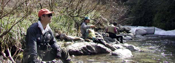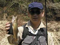 しばらくして会長ご一行様に車止めで再開しましたが、本流では人が多く入っているのか、小さなイワナしか釣れなかったとのこと。堰堤下の入れ食いの話を聞いてしまった会長は、もう日も暮れかかった薄暗い堰堤の下で、ルアーを必死に投げるのでした。さて、こうして我が山形渓遊会の春季釣行も無事終了しましたが、この釣行会が終わると今年も本格的な渓流釣りのシーズンが幕を開けます。これから6月末ころまでは、1年でもっとも渓流がエキサイティングに我々を迎えてくれる季節となります。今年も頑張って釣りを楽しむことに致しましょうか。(レポートは連休後半戦のダム湖の釣りパートVへと続きます。)