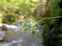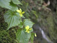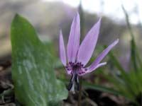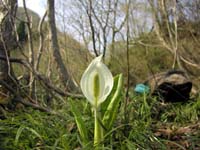 その堰堤プールを釣りたいのですが、残念ながら透明度が非常に高く、これでは絶対に釣れません。雪代が出て透明度が下がる午後に楽しみを取っておこうと、仕方なくそのプールに注ぐ小さな小さな支流へと入りお茶を濁します。この沢は本流に注ぐ部分でちょっとした滝になっており、その上流部には過っては魚が全く住んでおらず、渡邉会長が何年か前に下流部のイワナを何尾か放流したとのこと。遡行し始めてすぐに25cmほどの綺麗なイワナ(写真上)が釣れ始めましたが、3尾釣ったところで魚影を確認できたと言うことで納竿。その後は山菜取りと花の写真撮影に専念しました。