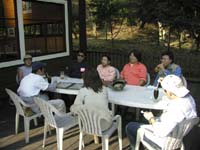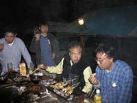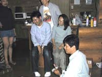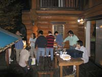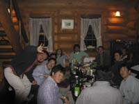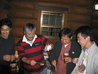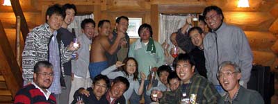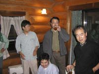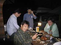 さて、翌日は近くの管理釣り場「白河フォレストスプリング」で楽しむ予定でしたが、例によって皆が目覚めたのはかなり日が高くなってからでした。のんびりと起き出し、朝食を作り、記念撮影が終わったのは、もう10時を回っていました。それでも皆さん釣り好きには変わりなく、ノンビリと管理釣り場に向かいました。残念ながら当の大さんはこの日も仕事が入っていて、管理釣り場へは来られたものの釣りはせずにすぐに会社へと向かっていかれました。