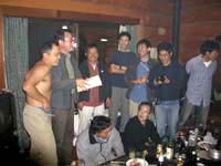 釣りそのものは、前日から急激に気温が下がって活性が低かったことや、有名な管理釣り場のためにお客さんの数が約250名を数え、相当なハイプレッシャーだったことで、非常に渋い状況でした。私も夕方17時まで粘りましたが、アタリは10回足らず、釣れたのはたったの3尾でした。他の皆さんも相当苦労されていた様子ですが、まぁ、今回のオフの目的は前夜の宴会の部でしたので、釣果もあまり気にならずに、それなりにワイワイと楽しく過ごせました。途中、あまりにも釣れないためか、レストランの脇でまたまた宴会の続きが始まってしまう始末でした。