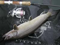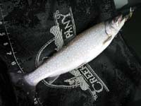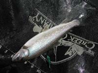 本当のことを言うと、この時ちょっとしたライントラブルが起こり、もたもたしていてミノーが完全に着底していたのですが、10秒以上もたってからおもむろにラインを巻き取ると、直後にヒットしてきました。スレていたのでしょうか、恐らく普通の釣り方ではヒットしてくれなかったのではないかと思われました。ヒットルアーは今では手に入らなくなってしまったスーパーシンキングミノー50mmヤマメでした。やはり重くて良く飛びしかも深いところを難なく探れるこのミノーの威力は絶大です。ザウルスの倒産により販売されなくなってしまったこのミノーが、私は本当に残念でなりません。その後一緒にいた2人にもなんとか尺前後イワナのヒットがあり、まずはめでたしめでたしでした。
