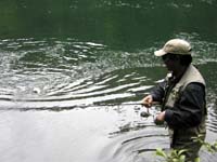 【5月30日(日)、山形県村山地方】 さて、5月の下旬ともなるといよいよ堰堤プールの釣りも最盛期に突入してきます。大物のシーズン到来です。この日はどうしてもホームグラウンドの堰堤プールを釣りたくて、土曜に仕事が入っていたにもかかわらず、無理をしてその日のうちにいわき市から山形市の自宅に戻りました。あいにく土曜の午前中にかなりの雨が降ったらしく、水温が急低下して寒河江のC&R区間でも土曜はあまり調子が良くなかった様です。しかし、前週に大物を釣り上げていた私は気合が入りっぱなしで、翌日の日曜は、今年始めて一睡もせずに釣り場に向かいました。