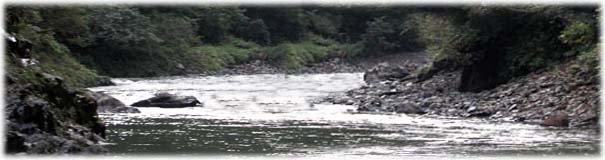 風玉さんと2人で釣り始めて1時間半ほどたった7時過ぎ、もうダメかと諦めかけていた時でした。一応ルアーを通しておくか・・・と何気なくキャストした深さ50cmほどのごく浅い瀬で、そいつはミノーに襲い掛かってきました。濁りが非常に強いため、恐らく早朝の暗い時間帯には大物は動いていなかったのでしょう。大物は餌の豊富な場所では小魚などの大型の餌を選択して食べていると思われ、餌を取るのは1日のうちのほんの一瞬だと考えていますが、7時過ぎのかなり明るくなったこの時間帯にその一瞬がやってきたのでしょう。(風景写真は実際の釣り場とは異なります)