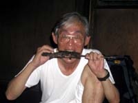 案の定、22日水曜の仕事が終わったのはもう夜の9時。この時点でまだいわき市にいた私は、一度山形市の自宅まで戻って用意をし、現場に到着するのはどう考えても深夜の2時か3時になってしまいそうです。これでは寝不足で会長さんの早い足に付いて行くキツイ山歩きなど到底不可能です。加えて忙しくて山入りの準備もロクに揃ってはいません。予定通りに待ち合わせ場所に向かいましたが、はて?どうするか? 渡邉会長と佐谷名人の2人は夜の明けるAM5時にはごそごそと起き出して来ていた様ですが、私はと言えば、車の中で高イビキ。私だけは1日遅れで入山することに決め込んでしまいました。