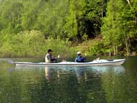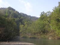 【5月29日(日)午後】 翌日の午後には、再び新潟のBuuさん・風玉さんと、また別の堰堤プールに繰り出しています。2人は今度はシーカヤックを繰り出し、相当な気合の入れ様です。なんでも、Buuさんは某ダム湖で午前中に47cmの大イワナを仕留めてきたらしく、そのノリでこの堰堤プールに挑んできたようです。しかしながら釣りの神様はとても気まぐれの様で、この日の夕方は16時から18時半まで粘りましたが、3人とも小さなアタリがあるものの、釣果はゼロでした。過去の記録を見ても、5月末ころのこの堰堤の釣果はとても気まぐれで、大釣りとノーバイトを繰り返しています。