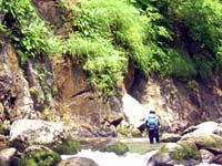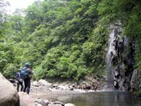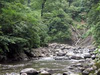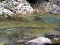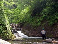 どうやら魚影は相当豊富なのですが、人の多い渓のため魚がスレていて、餌には全く見向きもされ無かった様子。ルアーには反応して追いかけてはくるのですが、勢い良く喰い付くまでには至らず、結局はスレ掛かりばかりが多かったと言うことの様でした。しかしこの魚影はなんなのでしょう。一つの淵に数尾の、それも結構なサイズのイワナも入っています。でも、殆ど釣れないのです。ただ、2時間ほど遡行を続けると、やがて魚影は薄くなり、そのうち殆ど反応が無くなってしまいました。