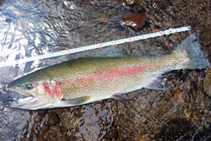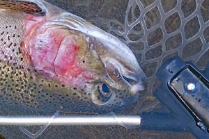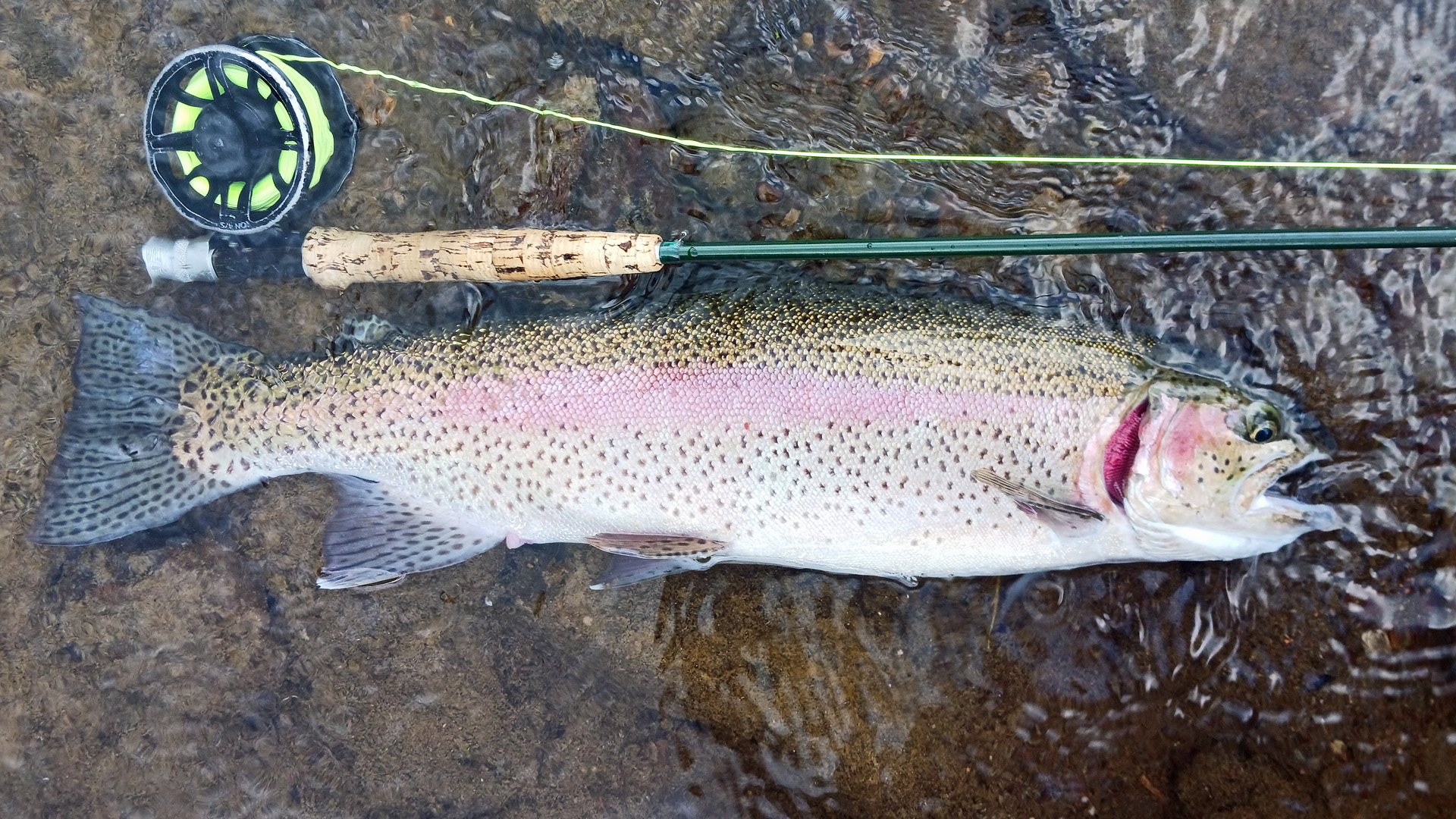 ビッグファイト松本さんですが、この日は活性が高く、とても良く釣れてくれました。今回も62・60・58・58cmと、大物4尾を含めて30尾以上の釣果でした。しかも、色々なフライに良く反応してくれました。冬の間に良く行く都内や長野の管釣りと比べると、やはり松本さんのお魚さんは、サイズの割に良く引き良く暴れてくれます。ちなみに、近年はどこの管釣りも放流サイズが小型化していますが、松本さんは池内で自然繁殖しているせいか、今年は平均サイズがだいぶ大きくなった気がします。魚体もとても綺麗で、この日は正にビッグファイトの一日でした。