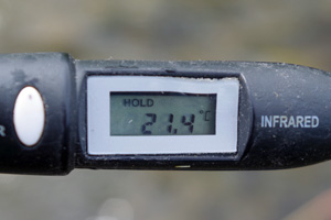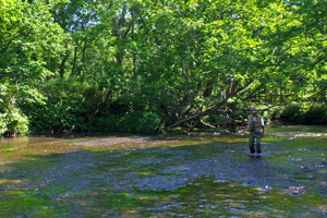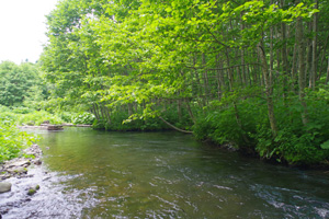 地元の釣り師からの情報では、このダム湖でも80cm超えのブラウンの実績があるそうで、お魚さんは確実に泳いでいるハズなのですが、ここ数日の猛暑のせいで、渓水温が既に19℃台と、真夏と変わらない状況になっていました。これでは釣れるものもまず釣れません。3時間ほど粘ってみましたが、ま、新規開拓が出来たということで、無理やり納得して納竿しました。しかしなんですね、北海道は本当に広いです。20年近く通っているのに、まだまだ知らない釣り場が幾らでもあるんですね。まだまだ飽きずに楽しめそうです。