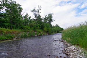 釣りの方は相変わらずの小物のオンパレードで、写真上中央の淵だけでオショロが10尾ほどヒット。いつもオショロはバカ釣れですが、実はちょっと変わった釣り方をしています。ポイントの上流側で、適度な流れの有る場所に竿先が来る様に立ち、対岸ぎりぎりに投入した後、ゆっくりと逆引きをします。アクションは殆ど加えません。すると途中でヒットしてくるか、足元までオショロが追い掛けてきます。1mほど手前までミノーが来たら、しばらくリーリングを停めて、その場で流れに任せてミノーを泳がせます。するとやがてオショロが喰い付いてきます。可愛いもんです。
