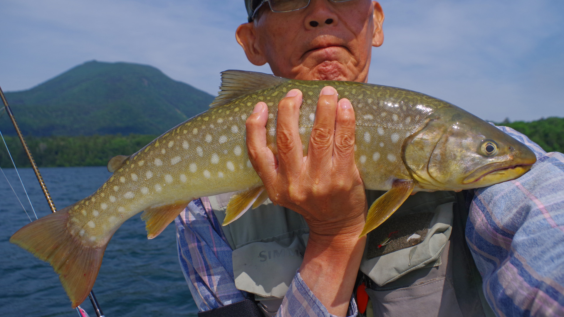 【使用タックル】 IL_Flusso/Tilf72、VanfordC3000HG、SiglonPEx8(35lb/2号)+GrandMaxFx2.5号、Bretton#1/#2/金赤 【6月24日(火曜)釣友のYさんと阿寒湖ミニオフ】 前日に釣友のYさんからメイルが有り、急遽、この日は阿寒湖でミニオフとなりました。ただ、現地に到着してビックリしたのは、岸からの釣り人が皆無だったこと。昨年まではこの時期、モンカゲのハッチを求めて大勢のフライマンが岸辺に並んで釣っていたのですが、今年は異変が起きている様でした。Yさんも前日に岸からのフライキャスティングで頑張られたそうですが、全くのオデコだったとの事。漁協さんに聞いたところ、今年はモンカゲがほぼいなくなってしまったらしい。「阿寒湖と言えばモンカゲ」とまで言われたこの地も、様変わりしていました。