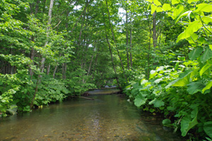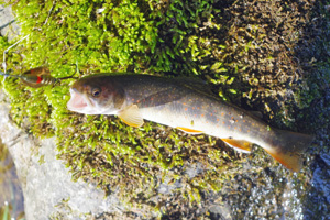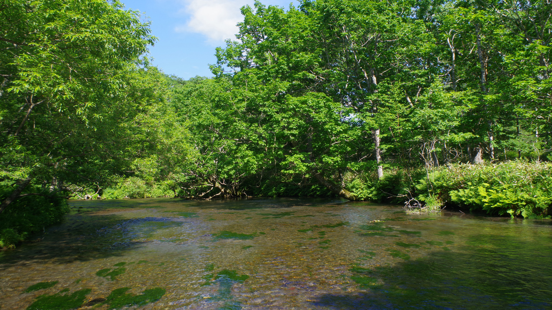 釣り場は湧水河川の最源流部でした。実は8月に入るとサクラマス、9月にはシロザケ(近年はほぼゼロ)の産卵遡上が見られ、その魚卵を求めて小さなイワナ達も移動してくるのですが、6月のこの付近は、まだお魚さんが少ないのです。加えて6月はバイカモの繁茂がまだ少なく、隠れる場所が少ないために釣り辛く、釣果が上がりません。それでもほんの200mほど釣り下がっただけで、小さなイワナ10尾とヤマメ1尾が釣れ、この渓も安泰の様でした。その後は付近の写真を撮影したりして、猛暑とは無関係な時間を過ごさせて頂きました。