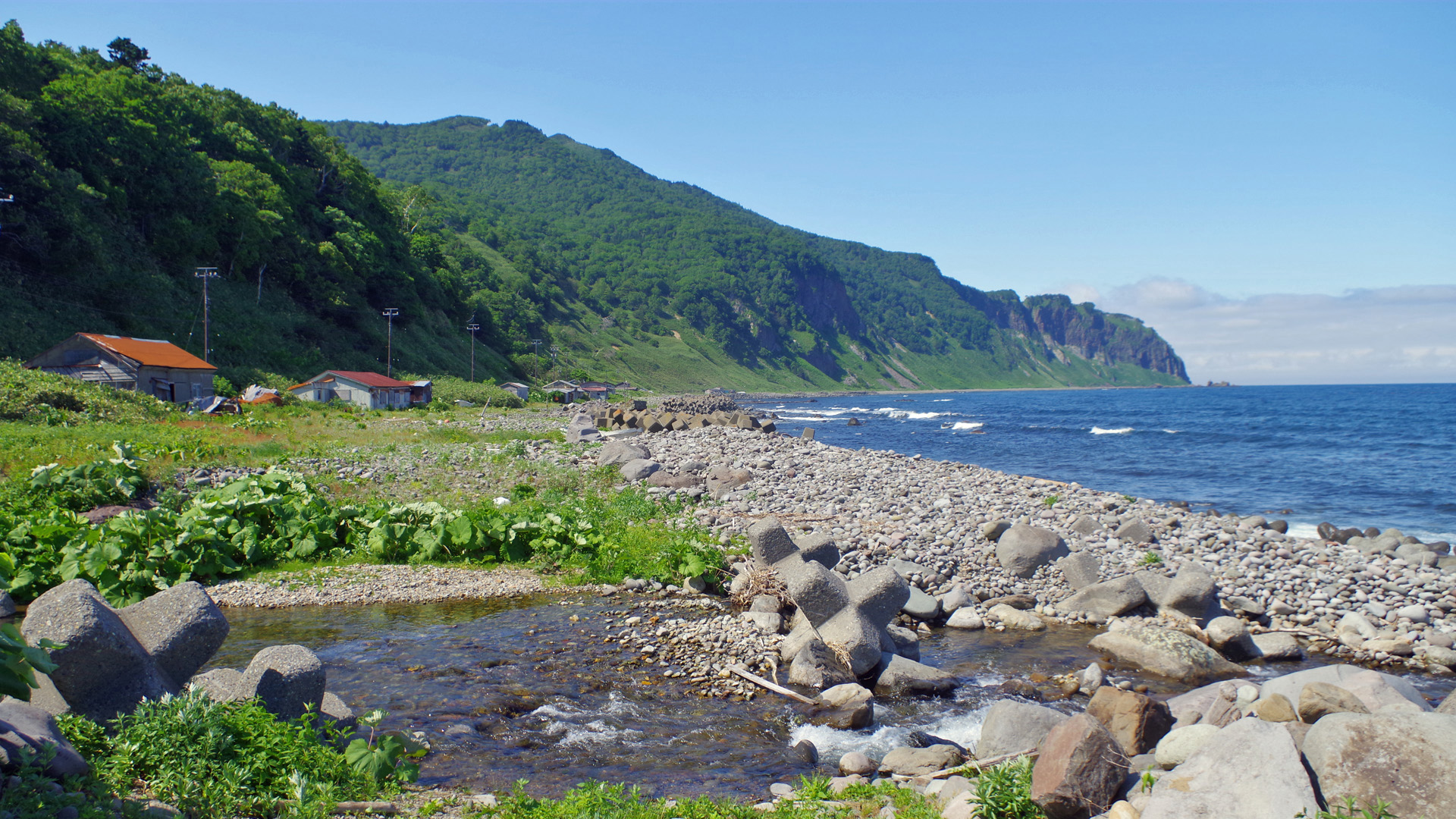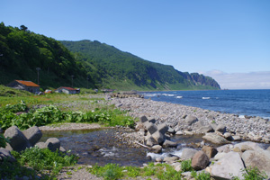 【使用タックル】 IL_Flusso/Tilf72、VanfordC3000HG、SiglonPEx8(35lb/2号)+GrandMaxFx2.5号、 Ryuki50/45S/匠/チャート/赤腹ヤマメ、Dahlia30ss/TS/赤腹ヤマメ、他 【6月28日(土曜)知床のドリーバーデンに癒される】 27日は終日大荒れの雨の日でした。渓はどこも泥濁りだろうと考え、大きく移動して知床の小河川で遊ぶ事にしました。目的とした渓は、知床相泊から徒歩で20分ほどの距離にあるカモイウンベという小河川ですが、4年前に来た時にヒグマに遭遇し、しばらく足が遠のいていました。しかし、この日はとても暑い日で、ヒグマは暑さに弱いため、昼間は寝ているに違いないと算段し、久しぶりに入渓してみたという訳です。青空の下、海岸線に沿って潮風に吹かれながらの散歩は、実に清々しいものでした。
