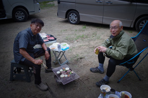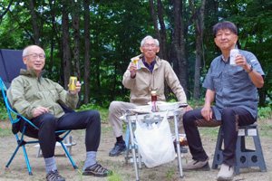 午後からは大きく移動し、南富良野地区のキャンプ場で佐谷氏と合流。3人での再会を祝うとともに、久々の焼肉バーティを楽しみました。佐谷氏との再会は3年ぶりであり、あれこれと話が尽きません。ただ3人とも70歳前後の老体となり、健康や病気の話が随分と多くなってしまったのはご愛敬でした。私自身は、焚火を囲んでのバーベキューは、もう5年ほどもやっておらず、超久しぶりに焚火の暖かさの良さを思い出させてくれました。焚火を囲みながらの友との語らいの時間は、正に至福の時間でした。
