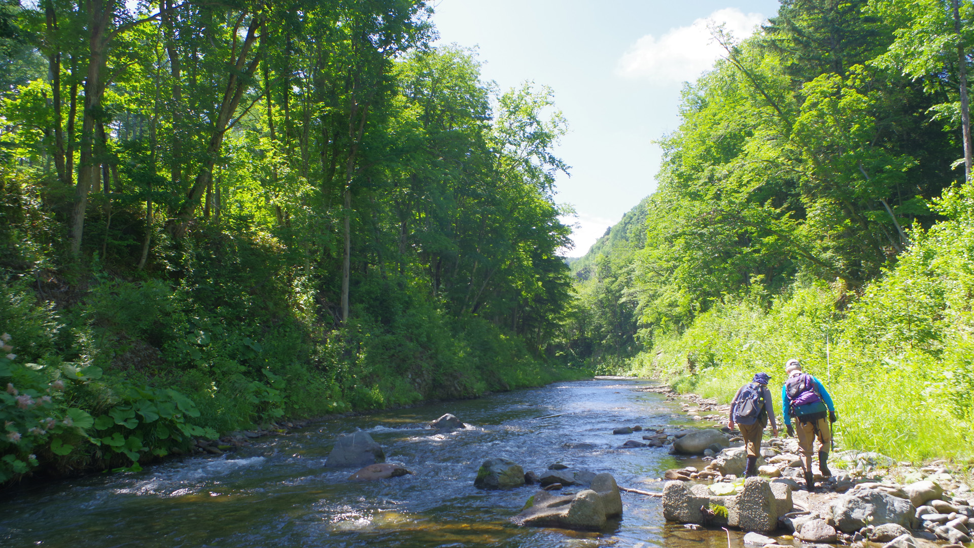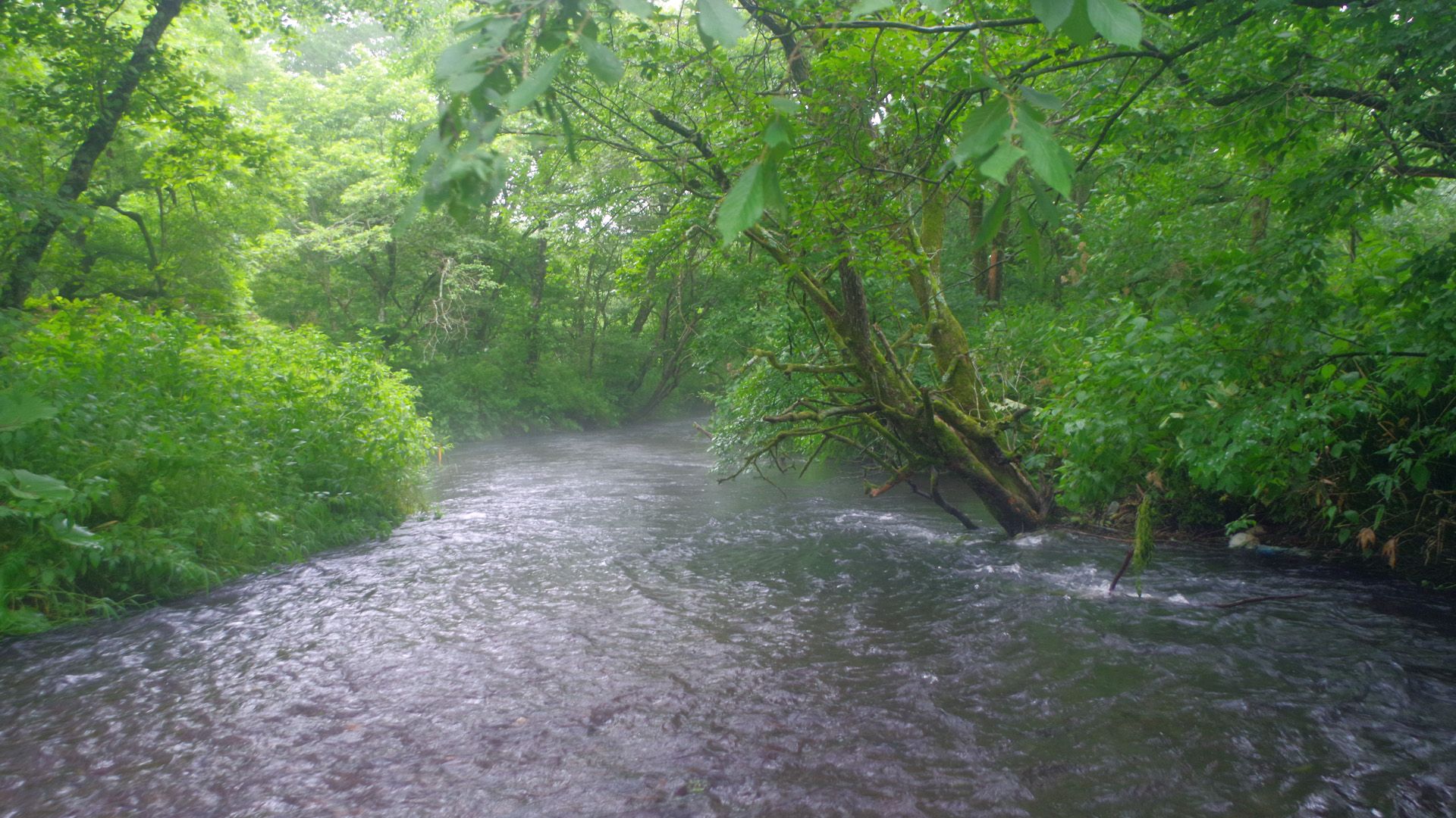 【使用タックル】 IL_Flusso/Tilf72、VanfordC3000HG、SiglonPEx8(35lb/2号)+GrandMaxFx2.5号、 Ryuki60/50S匠/赤腹ヤマメ、Sukari50SSdeep/オイカワOB、Bretton#2金赤+5B錘、他 【7月20日(日)続、クソ暑い日は湧水の渓に限ります】 この日は参院選挙の日。私の若い頃は、意気に感じて国を良くしようと奮闘していた政治家が少なからずいましたが、今は目先の票を稼ぐ事、つまり自己保身しか考えていない政治屋ばかりになってしまいました。投票したい人がいなくなり、もう十数年前から選挙には行かなくなってしまいました。さて、この日は3連休の中日でしたが、道東は前日から大気不安定で大雨となり、この日も午前中まで雨模様でした。ただ、10時半頃には雨が上がったため、雨後の水温低下と濁りを求めて、前々日に入渓した別海の湧水の渓へ向かってみました。
