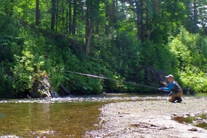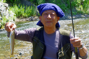 この日は午前中に上川地方のとある源流でイワナ釣りを楽しみました。ただ、渓遊会の2人は餌釣りが中心ですので、私はもっぱら写真係に徹します。渓相は美しいのですが、このところの雨不足で、渓水はジンクリアでかつ水量はかなり少な目でした。そのために、餌釣りでも釣り辛く、40cm超えの大きなイワナも過去には釣れているのですが、この日はサッパリでした。釣れたイワナの数は十分でしたが、最大は尺ちょっとまでと、少し物足りない結果でした。でもま、久しぶりに渓遊会のメンバーと渓流を遡行でき、気分は最高でした。午後は阿寒湖方面へと大きく移動しました。