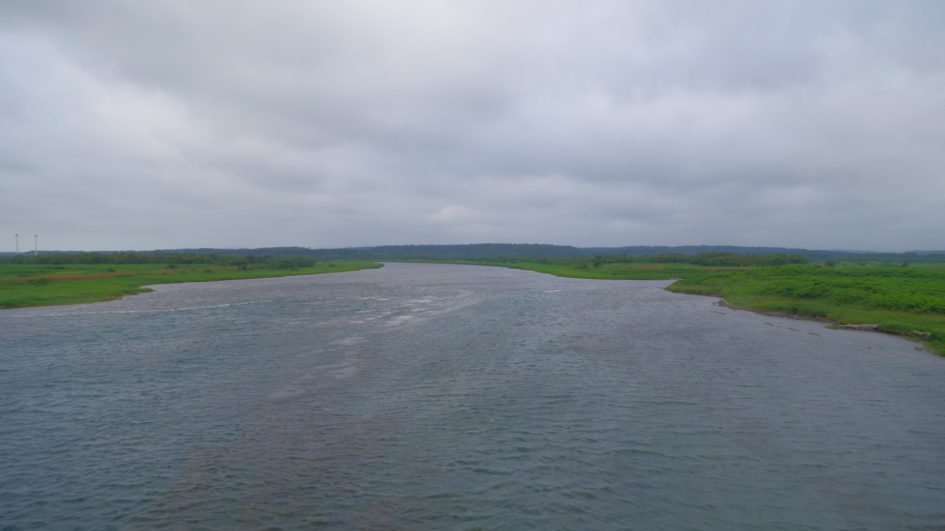 【使用タックル】 IL_Flusso/Tilf72、VanfordC3000HG、SiglonPEx8(35lb/2号)+GrandMaxFx2.5号、Ryuki50S/赤腹ヤマメ、他 【7月25日(金)海ガラスはオロローンと鳴くのか】 この日は昼のフェリーで稚内へ戻り、午後は日本海の海岸線を、一気に留萌の近くの小平(おびら)町まで南下しました。稚内から小樽まで続くオロロンラインのうち、天塩町までの海岸線を走る50kmほどは、実は私の北海道で一番好きな道路です。海と小高い丘に挟まれ、延々と草原の続くだけの何も無い道ですが、この「何も無い」のが人気で、最近は立派な観光スポットとなっています。オロロンとは海ガラスの別名で、オロローンと鳴いたそうですが、近年は絶滅寸前の様です。大好きな風景ですが、あいにくの曇天で良い写真が撮れなかったのが残念です。