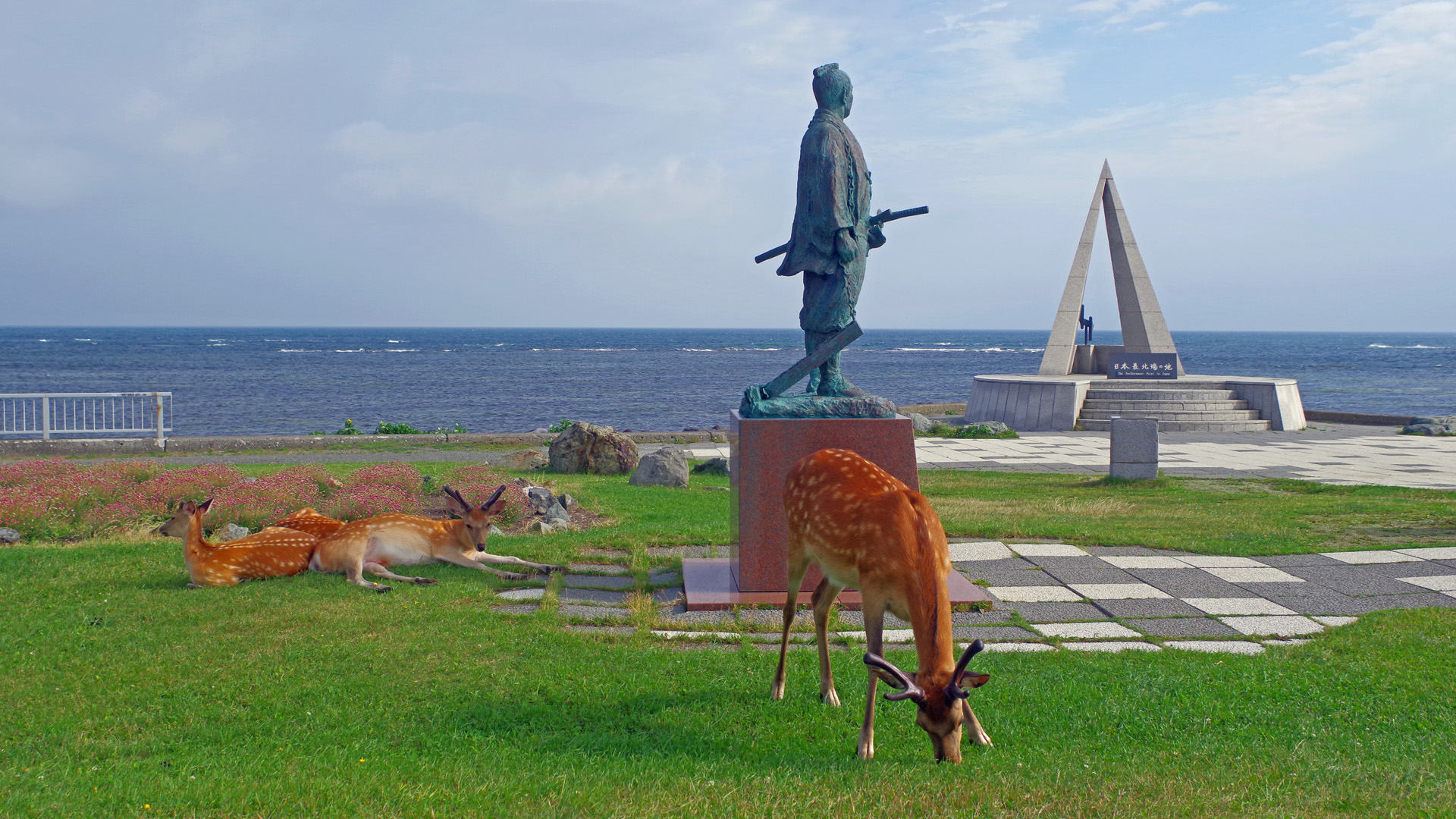 【使用タックル】 ありません。 【7月22日(火)稚内は暴風の町】 この日は稚内近辺をあちこちと散策しました。早朝に訪れた宗谷岬には、観光客を全く気にも止めないエゾ鹿たちが、寝そべってくつろいでいたのには驚きました。稚内公園にある北方植物園も訪れましたが、なんと、エゾ鹿が植物園の野草をほとんど喰い尽くしていて、何も残っていません。鹿も熊も狐も、そこまで保護する必要があるのかと、いつも疑問に思ってしまいます。それにしても、稚内はいつ訪れても強風が吹き荒れています。この日も車がガタガタと揺れるほどの風でしたが、そんな中、地元の人達は全く気にする事も無く、お仕事をされてました。ご苦労様です。