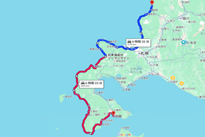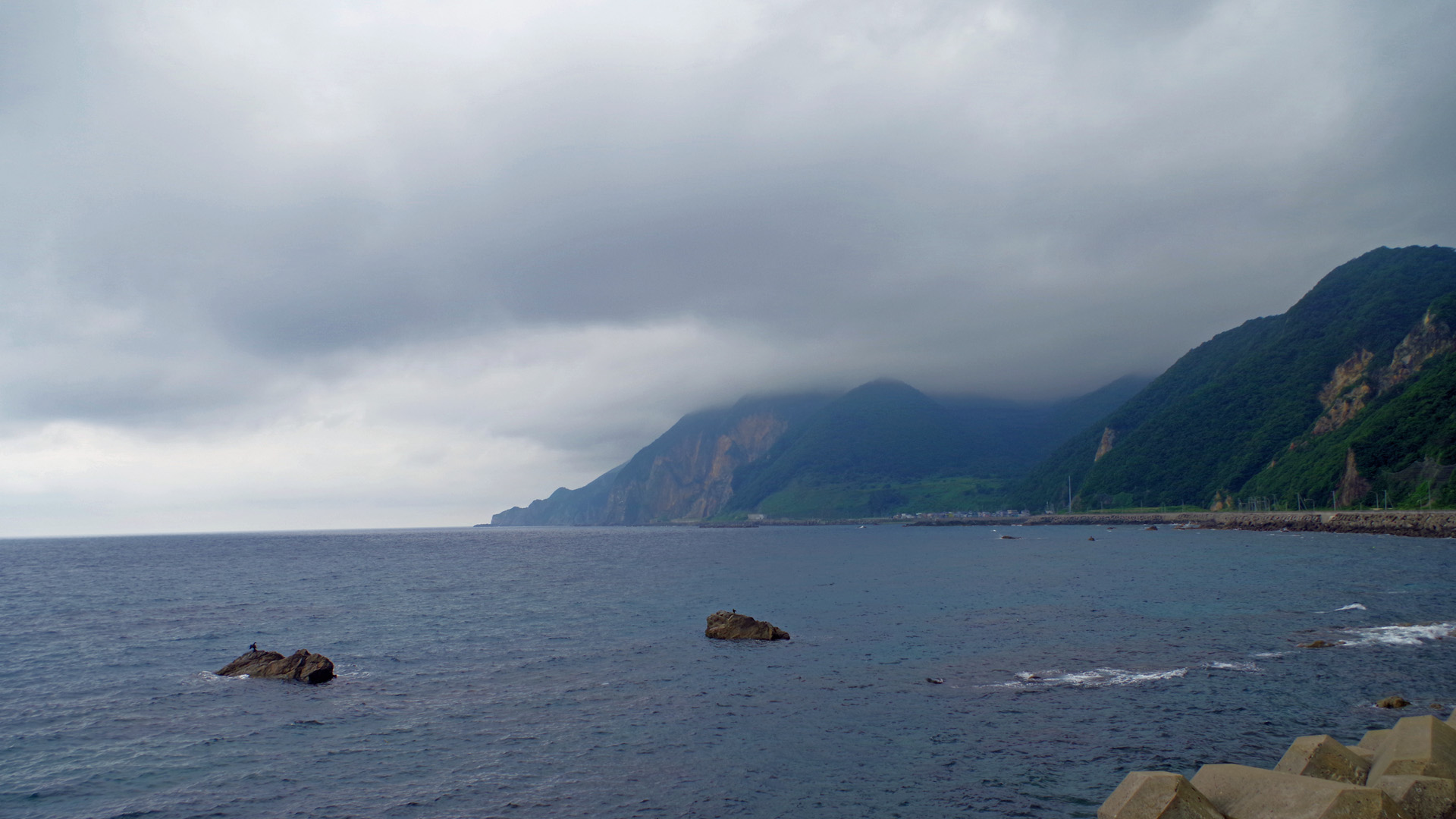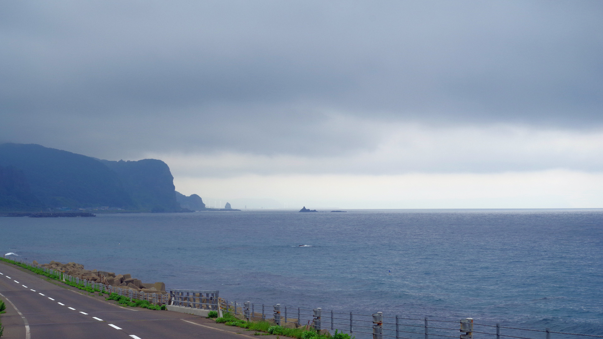 【使用タックル】 ありません。 【7月26・27日(土・日)土砂降りの日本海を行く】 天気予報が大きく変わり、26日から28日まで結構な雨が降るらしい。3日間もジッとしている訳にも行かないため、あきらめて大雨の中を南下することにしました。26日は早朝に小平町を出発し、留萌市→浜益町→石狩市→小樽市→積丹神威岬→岩内町までの270kmを走破。翌27日も早朝に岩内町を出発し、北海道最西端のせたな町尾花岬→北海道最南端の松前町白神岬→函館まで360kmを走破。1日目はほとんど豪雨で写真撮影はゼロ。2日目のルートは奇岩の多い美しい海岸線の風景が広がるハズでしたが、午前中は大雨でダメ、午後も曇天の写真ばかりでロクな物がない。疲れただけでした。