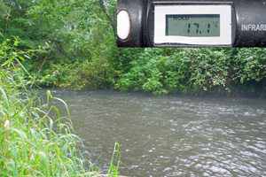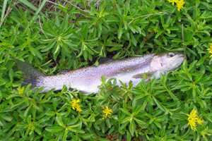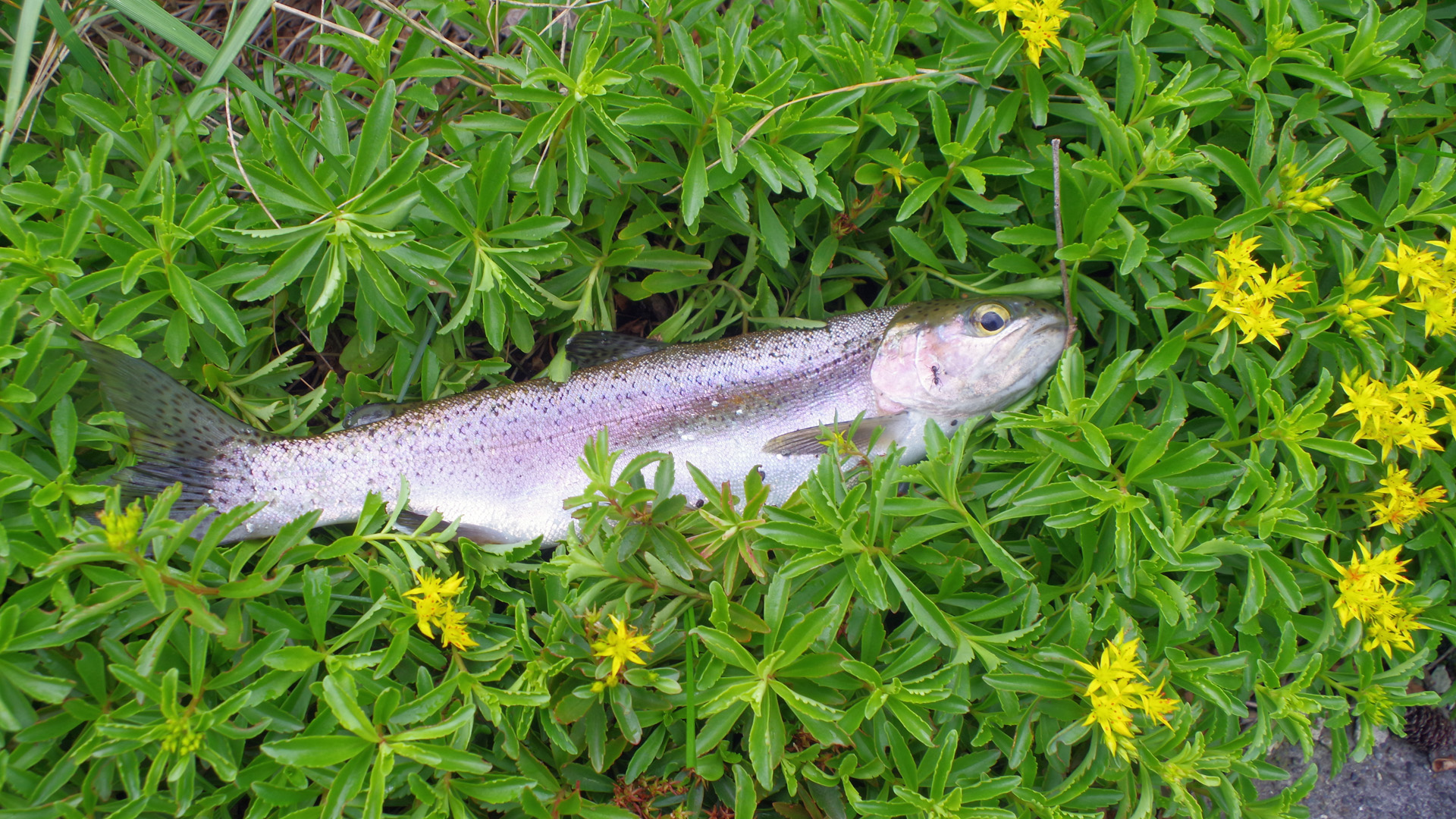 【使用タックル】 ありません。 【8月4日(月)釣る気の無い時に大物は釣れる】 前日の300kmを超えるドライブで疲れていましたが、翌日からしばらく雨が続きそうなので、無理をして午後から別海の湧水の渓へ向かいました。ただ、大ニジマスの時合いは午前中にやって来ることが多く、疲れもあって、まるで釣れる気がしません。水温は17℃台と、予想よりやや高めで、活性も低そうでした。ところが、釣り始めるとすぐに30cmほどのニジマスが勢いよく喰い付いてきて、しばらくすると尺足らずのアメマスもヒット。時間はもう15時を回っていましたが、意外にもお魚さんたちの活性は高そうな気配。