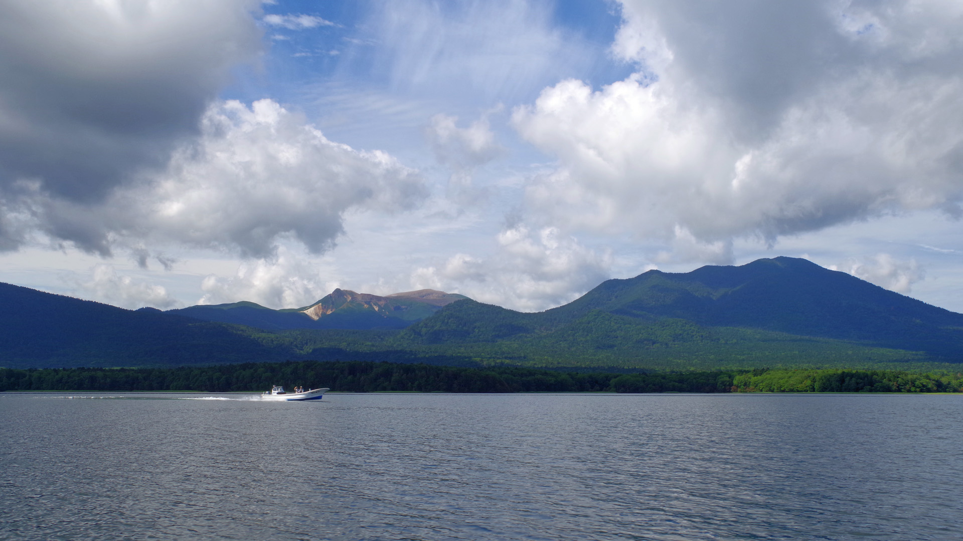 【使用タックル】 IL_Flusso/Tilf72、VanfordC3000HG、SiglonPEx8(35lb/2号)+GrandMaxFx2.5号、 Bretton#2金赤/赤着色、Ryuki50S匠/赤腹ヤマメ、Sukari50SSdeep/オイカワOB、他 【8月6日(水)雨上がりは急遽、阿寒湖へ】 この日は大雨の後で、しかも風の弱い予報が出たため、急遽、阿寒湖へと向かいました。風速4m/hrを超える風が吹くとゴムボートには危険なため、阿寒湖は穏やかな日のみの釣りとなります。しかし、風の予報が正確に出るのは概ね前日であり、広い北海道では移動時間が問題になります。ただ幸いにも、私の主な釣り場は、十勝、釧路北部と北見となっているため、阿寒湖はそのほぼ中央に位置していて、どこからも1時間半程度で移動できるため、都合が良く助かっています。しかも、この日は豪雨の翌日であり、大ニジマスの確率が高いと算段しました。
