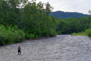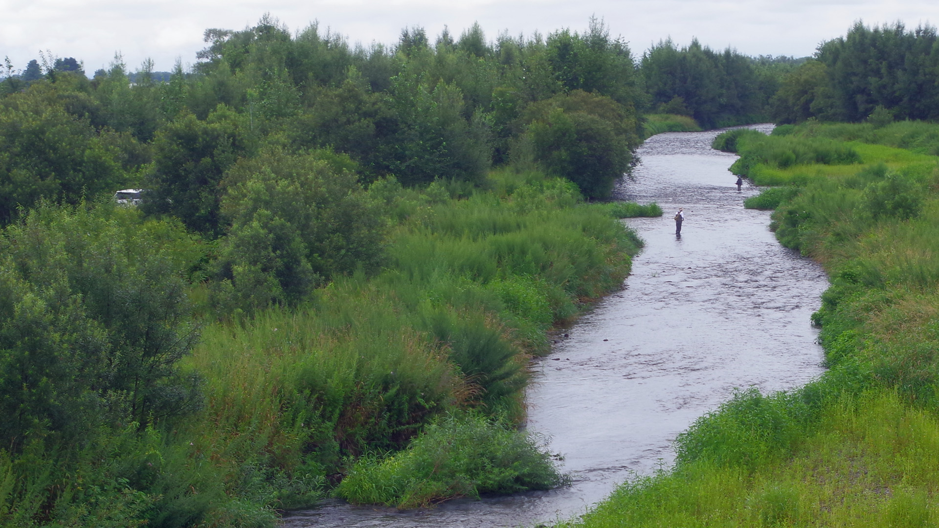 【使用タックル】 PalmsLakezeeLSZS-991/SS、StradicC3000、SiglonPEx8(35lb/2号)+Nanodax20lb、 自作潜行板中サイズ、D-Contact85/鮎(SBL改) 【8月9日(土)久しぶりの十勝のホームは爆釣】 今年、十勝で竿を出したのは、6月23日の2時間ほどのチョイ釣りだけでした。十勝は東京並みに暑いのです。今年は来道した途端に猛暑になってしまったため、暑さを避けて釧路地区の湧水の河川や源流ばかりを釣っていました。そして、3日ほど前から雨続きとなり、気温が下がりアブ地獄も解消されたため、ようやく十勝での釣りスタートとなった訳です。しかし、今度はお盆休みで、渓は釣り人だらけ。全く以ってうまく行きません。それでもこの日は、前日までの結構な雨で水温が下がり、濁りも入って絶好の釣り日和でした。