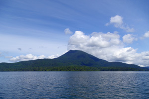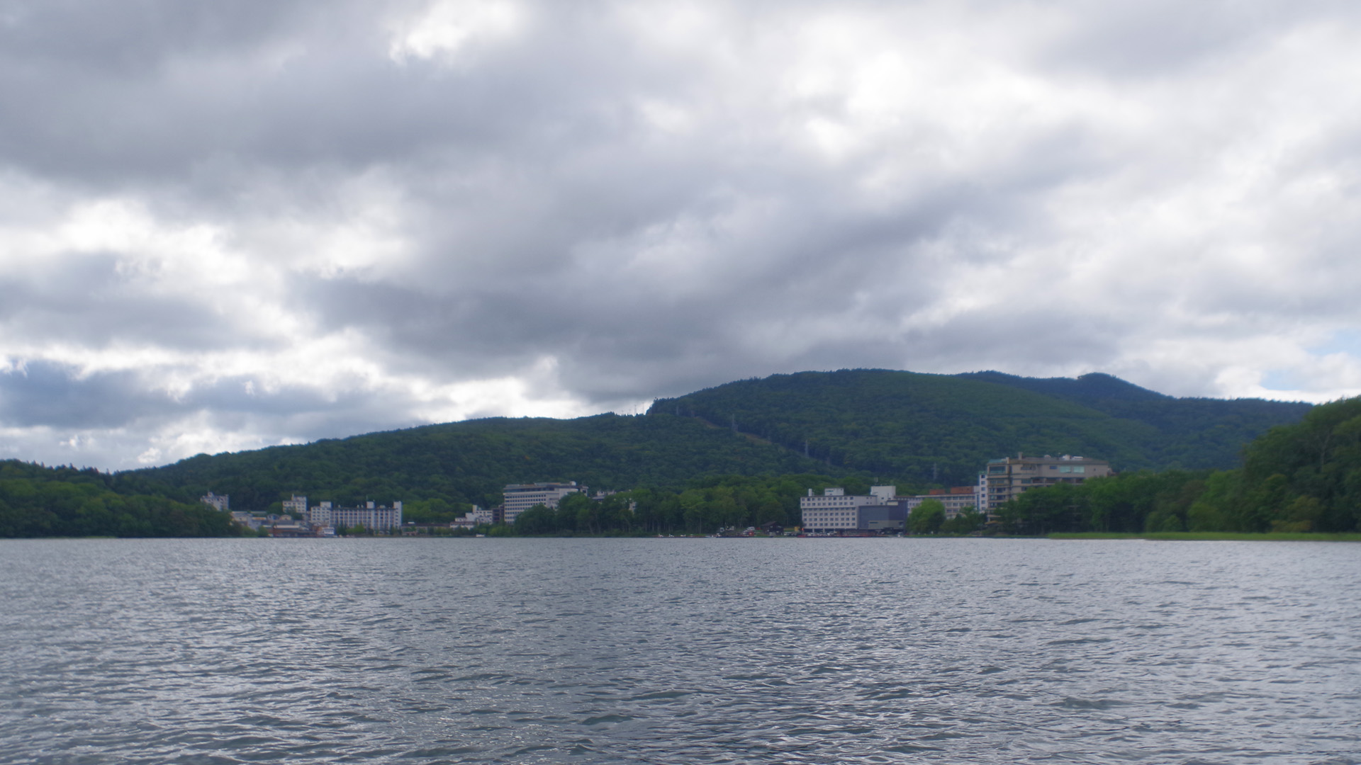 【使用タックル】 IL_Flusso/Tilf72、VanfordC3000HG、SiglonPEx8(35lb/2号)+GrandMaxFx2.5号、 Sukari60Deep/Rグリーン、Sukari50ssDeep/オイカワOB、Bretton#2金赤、他 【9月4日(木)風の弱い日は阿寒湖でニジマス狙い】 8月初以来、雨ばかりでしたが、ようやく秋らしい良いお天気になりそうです。この日は久しぶりに風の弱い予報となったため、阿寒湖でボート釣りとしました。ただ、予報が外れて午前中は結構な風が吹き、白波が立っていてボートを出せません。前日までの大気不安定状態が、まだ残っていた様です。それでも10時ころからは波も治まり、無事、出航できました。しかし、目的の大ニジマスは、お天気の良い日の午前中が狙い目のため、ちょっとガッカリです。案の定、釣り始めてしばらくはアメマスばかりで、ニジマスの気配は有りません。