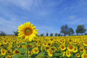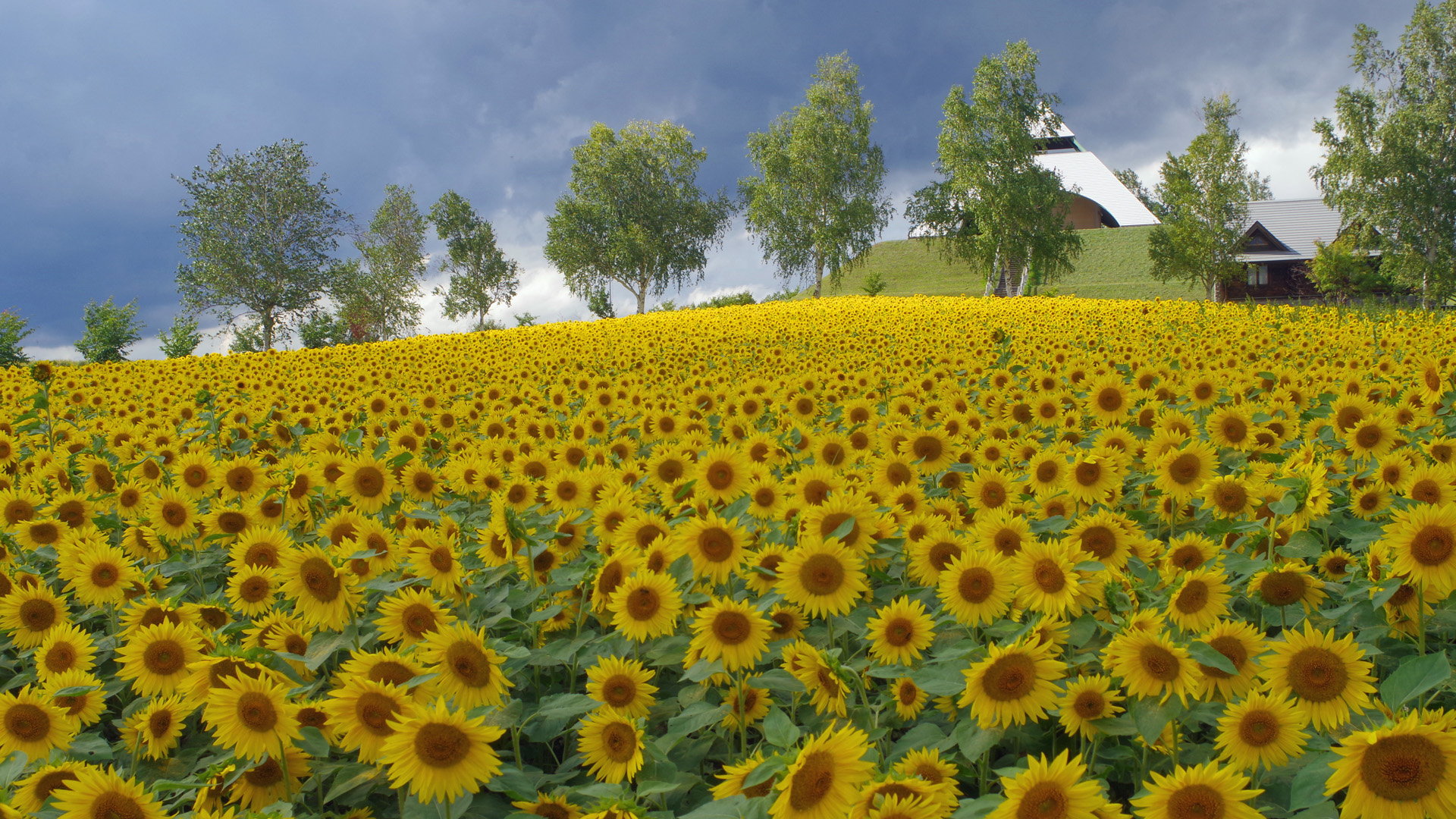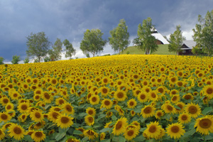 夏の長雨の季節もようやく終焉を迎え、北海道は今、秋の渓流釣りのトップシーズンを迎えています。明るい秋空の下、渓では大型のニジマスやアメマス、また可愛いオショロコマなどが盛んに釣り上げられています。遡上アメマスも元気に産卵の準備をしています。海でのサケ釣りも、まずまず好調の様です。何をやっても楽しく清々しい、最高の季節となりました。気温変化の激しいこの季節ですが、体調管理に万全を尽くしながら、引き続き思う存分、楽しんでゆきたいと思っています。(下写真は、サンフラワーの美瑛の丘) ![]() ![]() 【9月11日(木)快晴の美瑛のハズが土砂降りの丘】 この日は快晴の予報のため、美瑛で写真撮影の日としました。ただ、午前中のごく短い時間は良く晴れていたのですが、お昼前からにわかに雲が沸き、午後からは土砂降りの大雨になってしまいました。前日の昼までは木曜・金曜と良く晴れる予報だったのですが、前夜になり、例によって突如「大気不安定」の予報に急変。また、騙されました。加えて、四季彩の丘では温暖化のせいか、なぜか色鮮やかさがイマイチで、くすんだ花が目立ち、少々ガッカリでした。それでも、午前中はまずまずの良い写真を何枚か撮影できました。