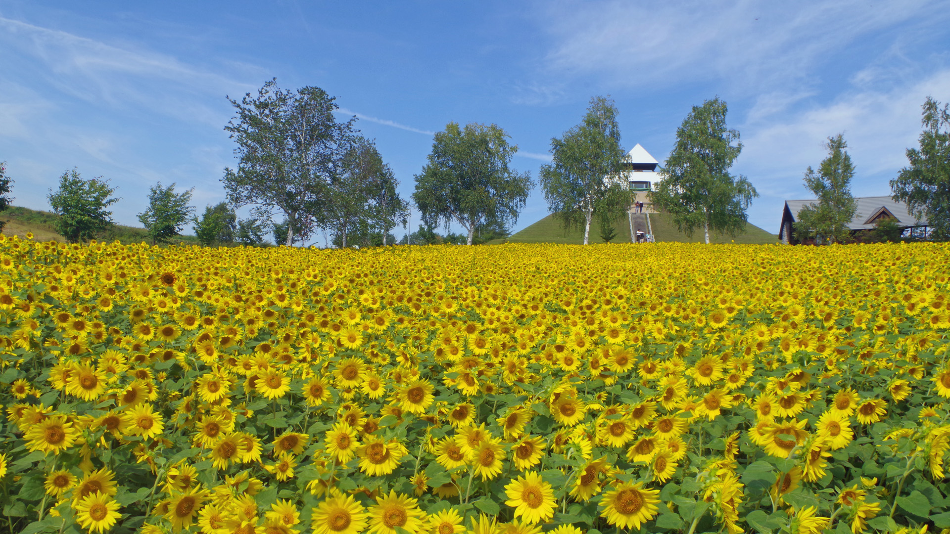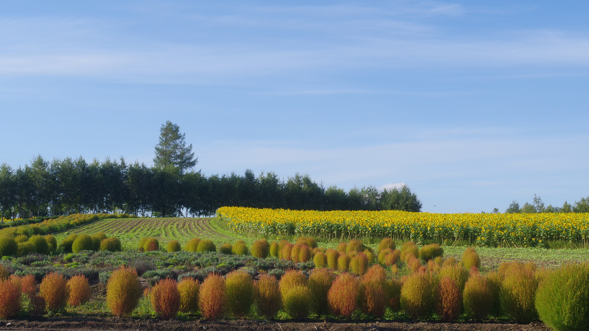 この日は快晴の予報でしたが、やや雲の残るまずまずの日でした。まずは前日に見つけていたヒマワリ畑の写真を撮影し、その後は、3年ぶりに美瑛の「青い池」を訪問。青い池はインバウンドに人気で、近年は駐車場に入れない車で大渋滞するため、訪問を諦めていました。ただ、最近は熱が覚めたのか、平日に駐車場が満杯になることは無くなった様です。アジア系のインバウンドには未だに人気の様で、人だかりの殆どが韓国・台湾・中国の人達だった様です。最後は「ぜるぶの丘」という花の名所に初めて伺いました。規模は小さいのですが、個性的な花の配置で、また変わった写真が何枚か撮れました。