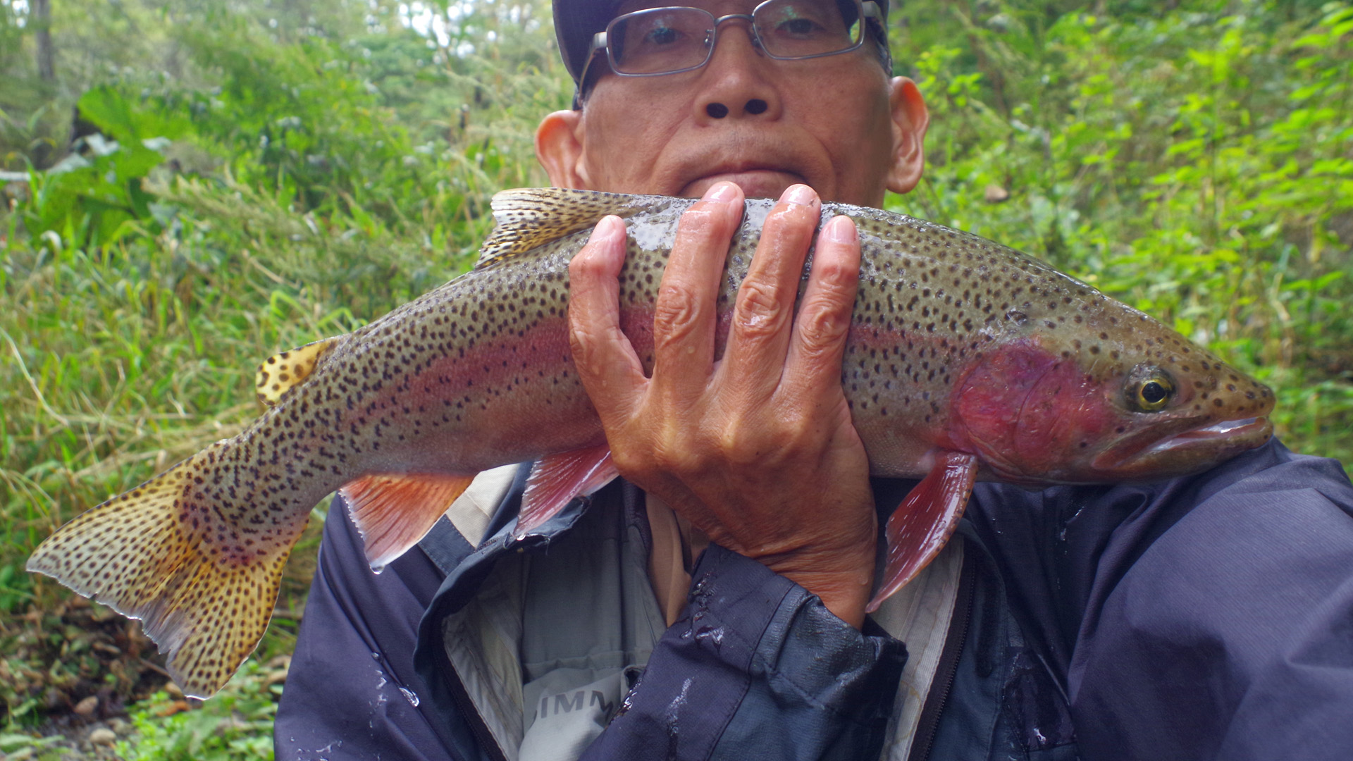 【使用タックル】 IL_Flusso/Tilf72、VanfordC3000HG、SiglonPEx8(35lb/2号)+GrandMaxFx2.5号、 Sukari50ssDeep/オイカワOB、Bretton#2金赤、他 【9月18日(木)やはりシルバーウィークは釣り人が多い】 午前中はPC作業に忙しく、午後から少しだけホームの渓で竿を出してみました。やはりシルバーウィークと言うことで、平日でも渓畔にはポツポツと釣り人の車が停まっています。構わずに空いている場所に入渓すると、今度はすぐに下流側からフライマンが2人、追い掛けてきました。ただ、前日とは打って変わって活性は高く、おチビちゃんが3尾ヒットし、最後に31cmのすこぶる元気で綺麗なニジマスがヒット。すぐ後ろにフライマンが来ていたので、2時間足らずでアッサリと納竿しました。その後は阿寒湖まで移動しました。