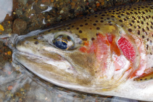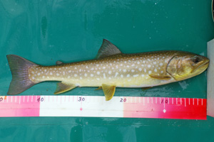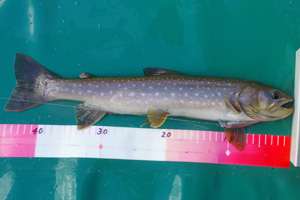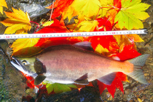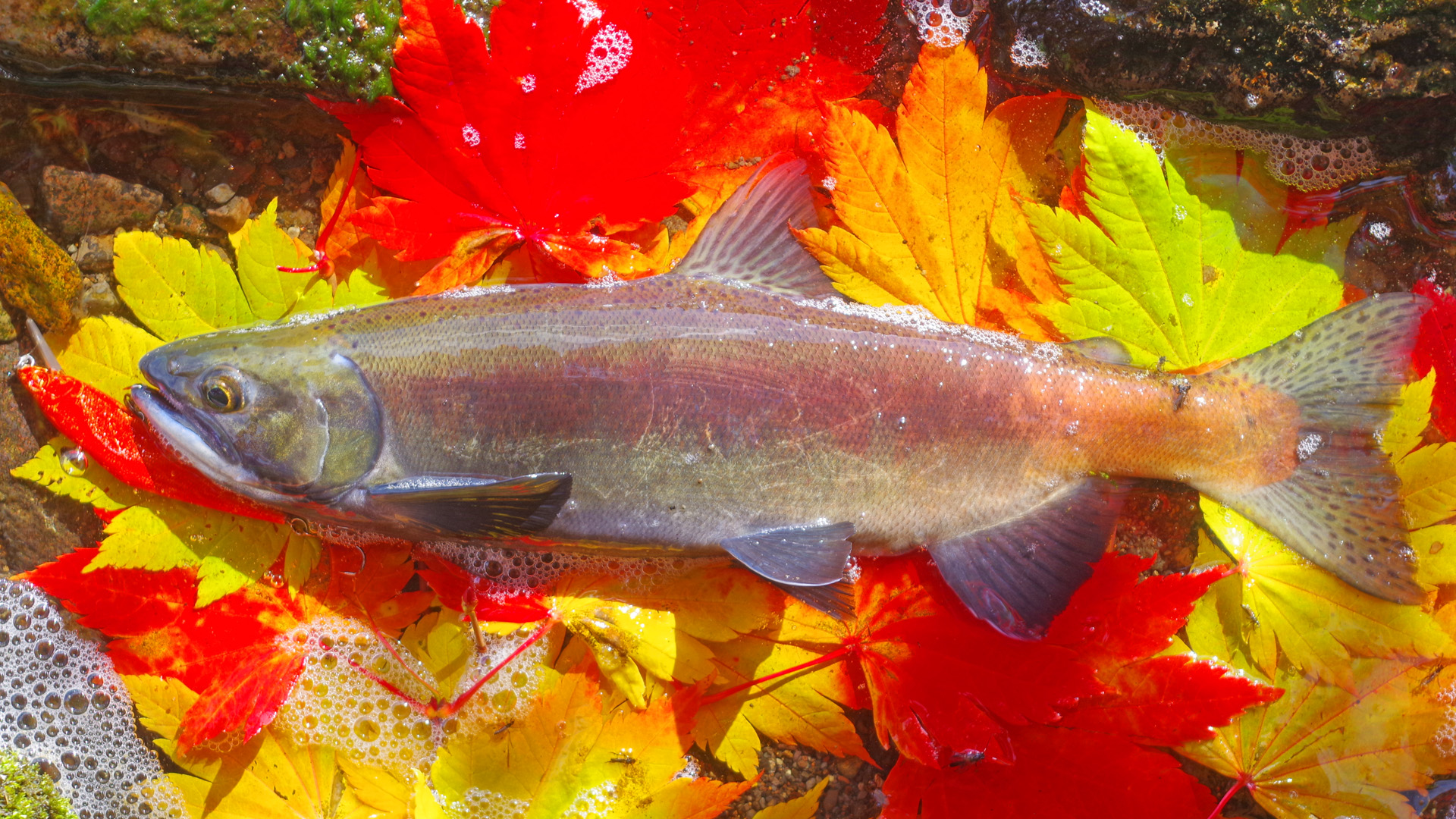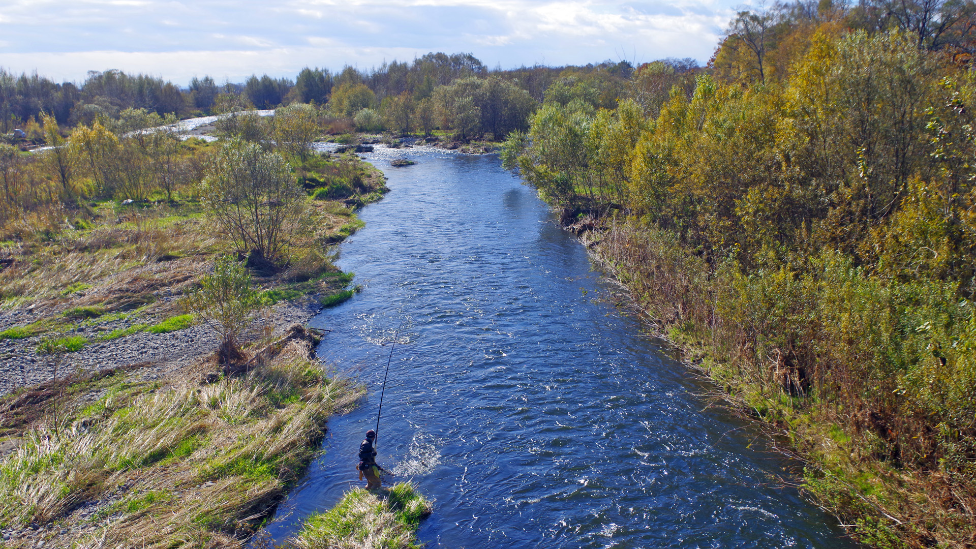 まずは最上流部へ入りましたが、魚影は10月初とほぼ同じで、尺足らずのアメマスが2尾釣れただけ。ただ、小さな魚影が走るのを結構な数、確認はできました。下流部では辛うじて1尾だけは釣れましたが、魚影はほぼゼロに近い状況でした。結論として、やはり遡上が遅れているのではなく、遡上数そのものが激減しているとしか思えませんでした。かつての音別・茶路川と同じ事がこの地でも起きているのは、やはり間違いない様です。大アメマスを狙える渓は、来年以降、もう無くなってしまうのでしょうか。寂しい限りです。