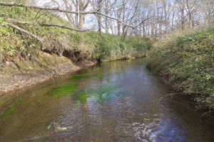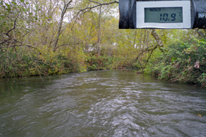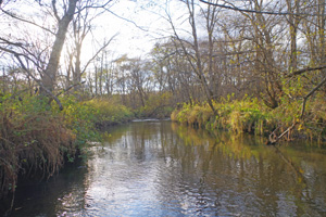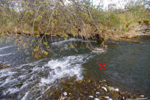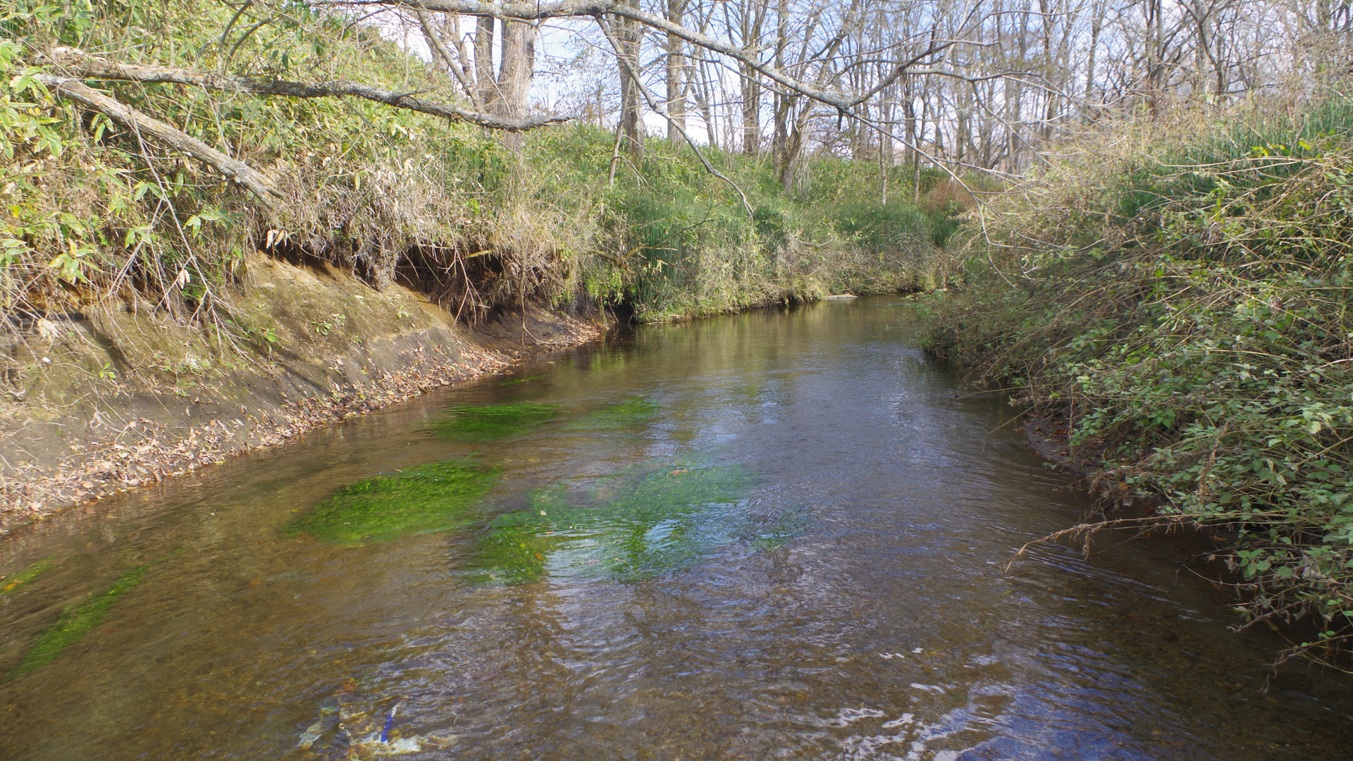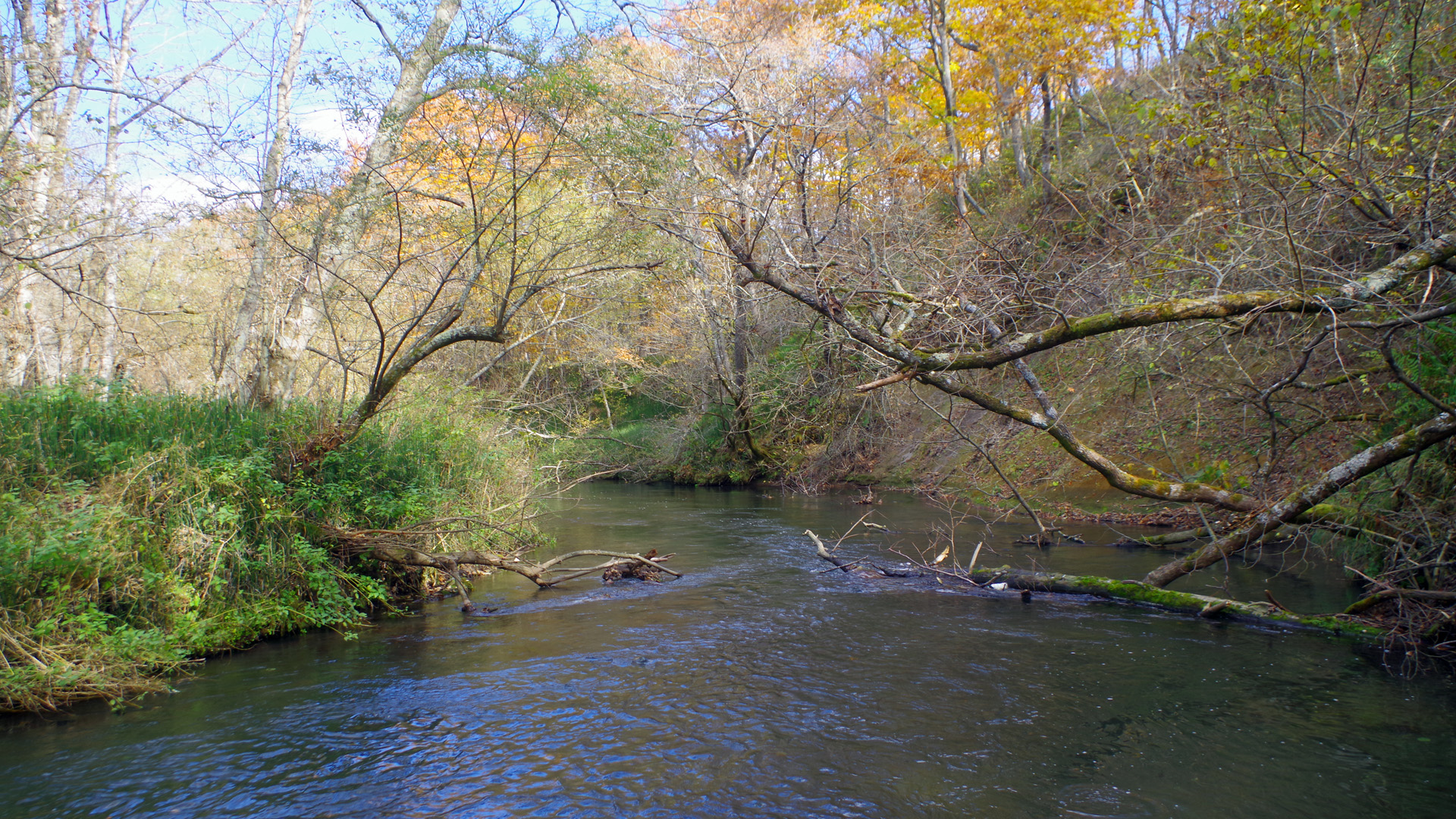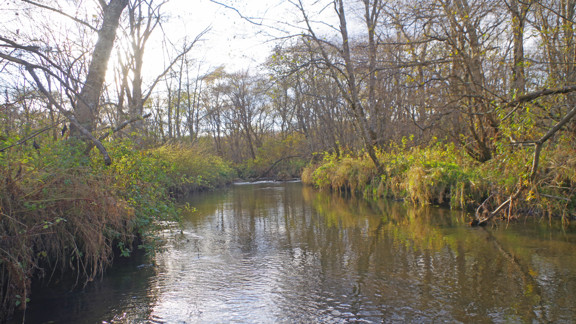 【使用タックル】 IL_Flusso/Tilf72、VanfordC3000HG、SiglonPEx8(35lb/2号)+GrandMaxFx2.5号、D-Contact72/鮎(SBL改) CarddiffNX/S83ML、VanquishC3000、SiglonPEx8(35lb/2号)+Nanodax17.5lb、D-Contact72/ワカサギ(SBL改) 【10月25日(土)大アメマスのあの渓はどこへ?】 10月初にも別海の遡上アメマスの渓へ赴き、魚影の少なさを確認していました。しかし、本当に遡上数が少ないのか、或いは遡上が遅れているだけなのか、確信が持てないでいました。そのため、最後の最後にもう一度、遡上アメマスの渓を釣ってみることにしました。この日は最源流部と下流部の2ヶ所を釣ってみましたが、土曜とあって、相変わらず釣り人だらけで入るところが無くて困りました。それでも、この渓は牧場の適当な所からいくらでも入ることができるので、気にせずに入渓。