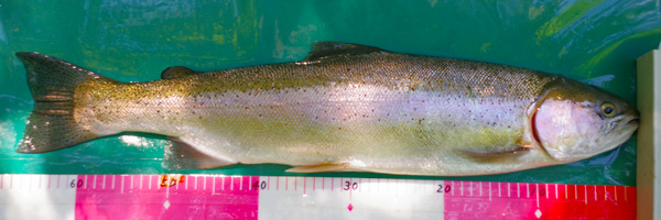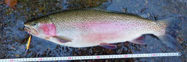 ニジマス 別海の湧水の渓で、大物の良く着く新たなポイントを発見し、大ニジマスを7尾も釣り上げる事ができました。また、阿寒湖では潜行板によるレイクトローリングで、効率的にニジマスを釣り上げる方法を編み出し、自己記録を更新するモンスターニジマスを釣り上げる事に成功しました。レイクトローリングでは、レッドコアの使用を止めました。そして、ほぼ全てのニジマスを、ルアーのみで釣り上げています。ただ、全部で14尾もの大ニジマスが釣れたにも関わらず、サイズは1尾を除いて全て50〜56cmと、なぜか振るいませんでした。