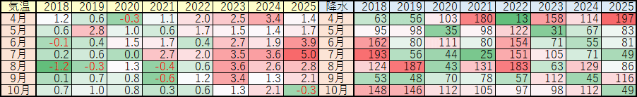 皆さんにとって、2025年はどの様なシーズンでしたでしょうか。思い出に残るシーズンになったでしょうか。それとも、あまり良いシーズンではなかったのでしょうか。毎年、禁漁に入った時期に、そのシーズン全体を振り返ることを恒例にしています。さて、今年はどの様なシーズンだったのでしょうか? (注:本レポートは新潟県下越地方、及び北海道の釣りを想定しており、気候や水量等の状況は他府県と異なる可能性があります。) 猛暑と渇水が常識となった2025年 今年の日本の夏も記録的な高温となり、平年比+2.36℃という、前年までの記録を大幅に更新する暑い夏となりました。この3年間、平均気温は高温の記録を更新し続けていて、今年もまた史上最も暑い夏となりました。そのためか、西日本では梅雨入りが5月、明けが6月となり、北海道や東北も含め、統計開始以来最も早い梅雨入り・明けの記録となりました。特に北海道では、6〜8月にかけて過去最高の高温を記録し、渓水温は渓魚の生息限界を超え始めています。 猛暑に加え、釣り人の数も年々増加している様です。バス関連の人口が大幅に減少している一方で、トラウト関連のルアー・フライフィッシングの人口は、コロナ以降、増加しています。特に北海道ではフライフィッシングの人口が増加している様です。また、道外からのキャンピングカーを利用した長期滞在型の釣り客が増え、私の様な数か月単位で道内に滞在する釣り人も、珍しくありません。猛暑と釣り人の増加で、ますます渓魚を釣り上げるのは難しくなっている様です。 ![]()