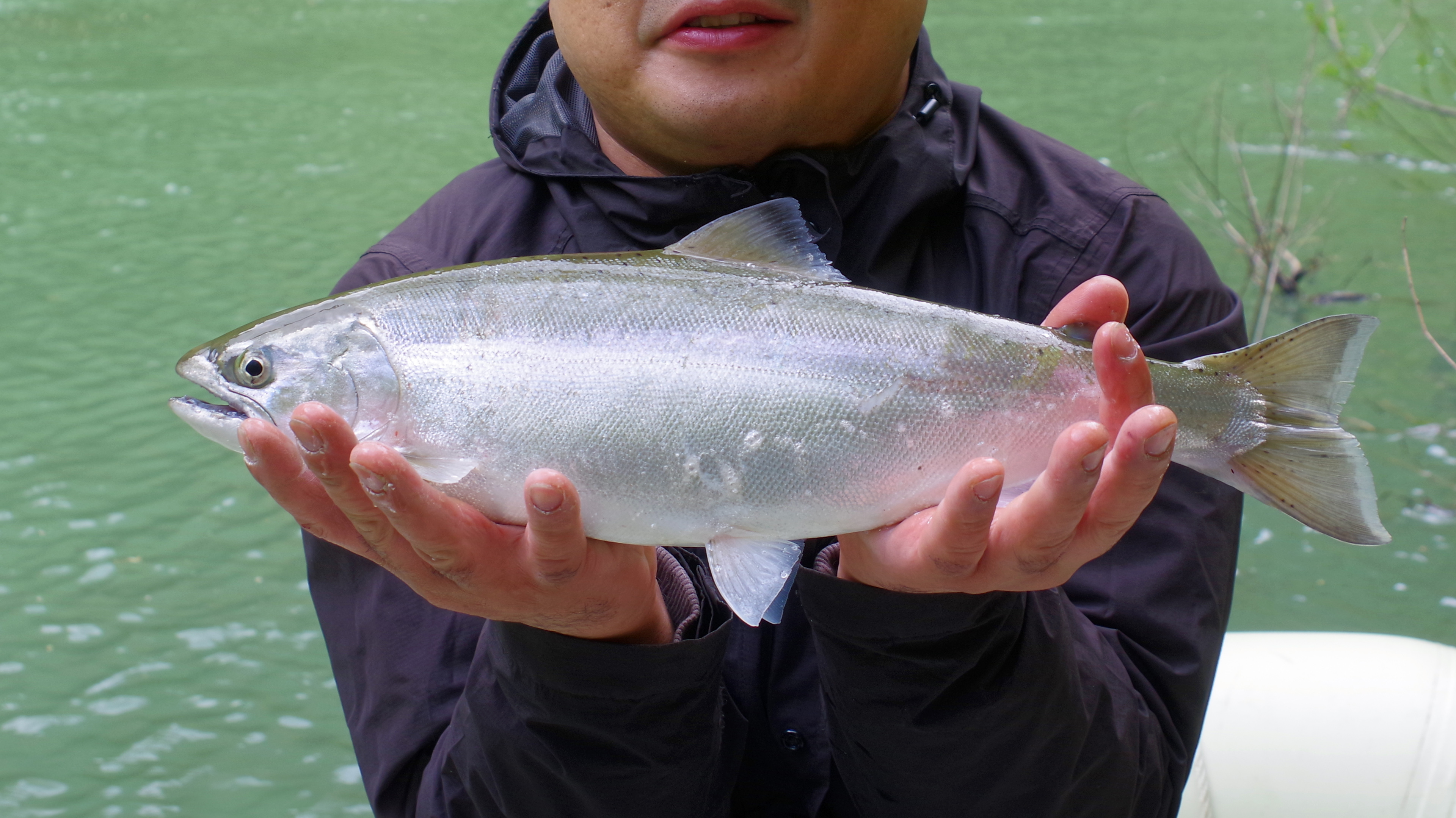堰堤の底から飛び出した 遡上サクラマス46cm