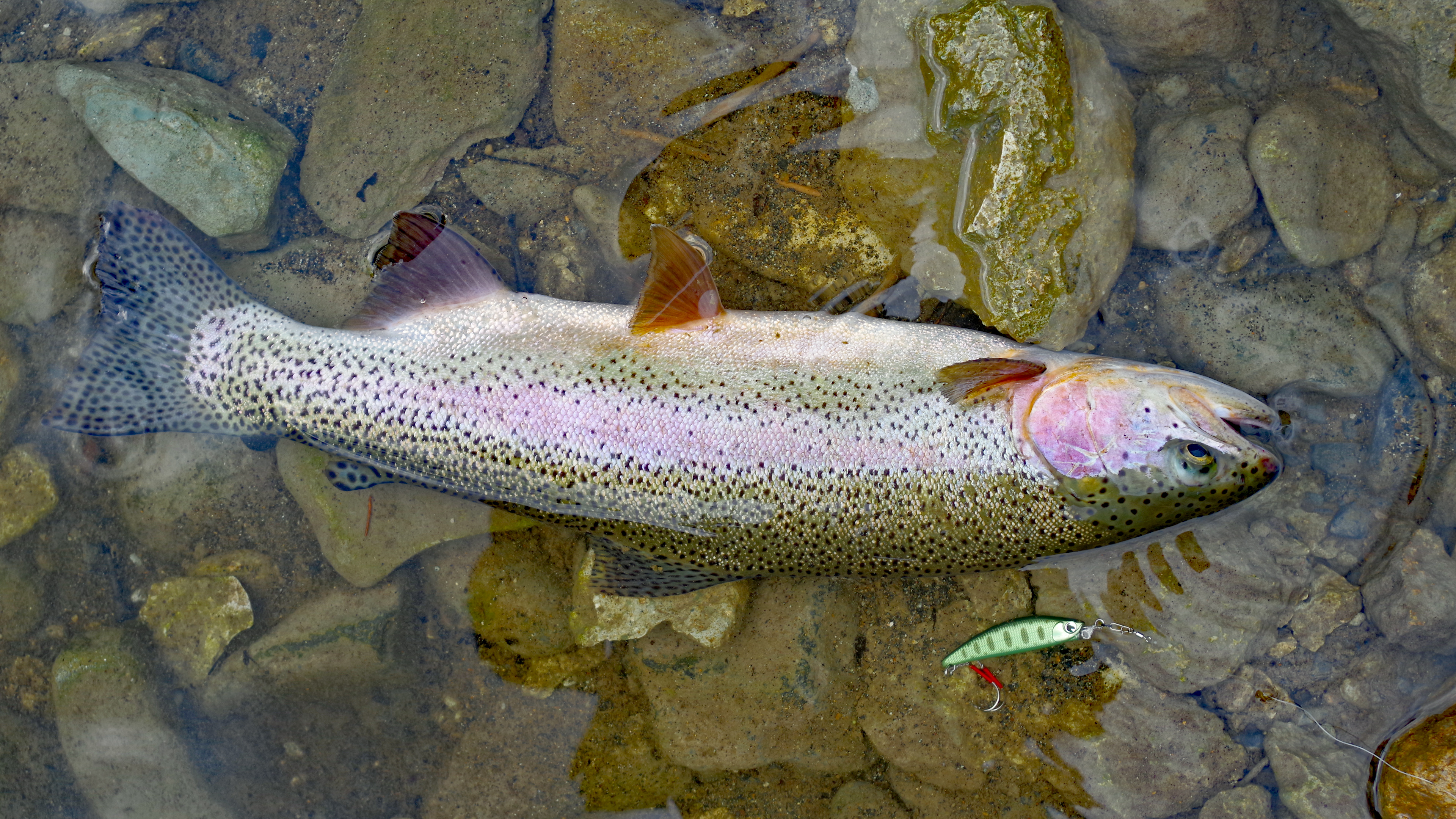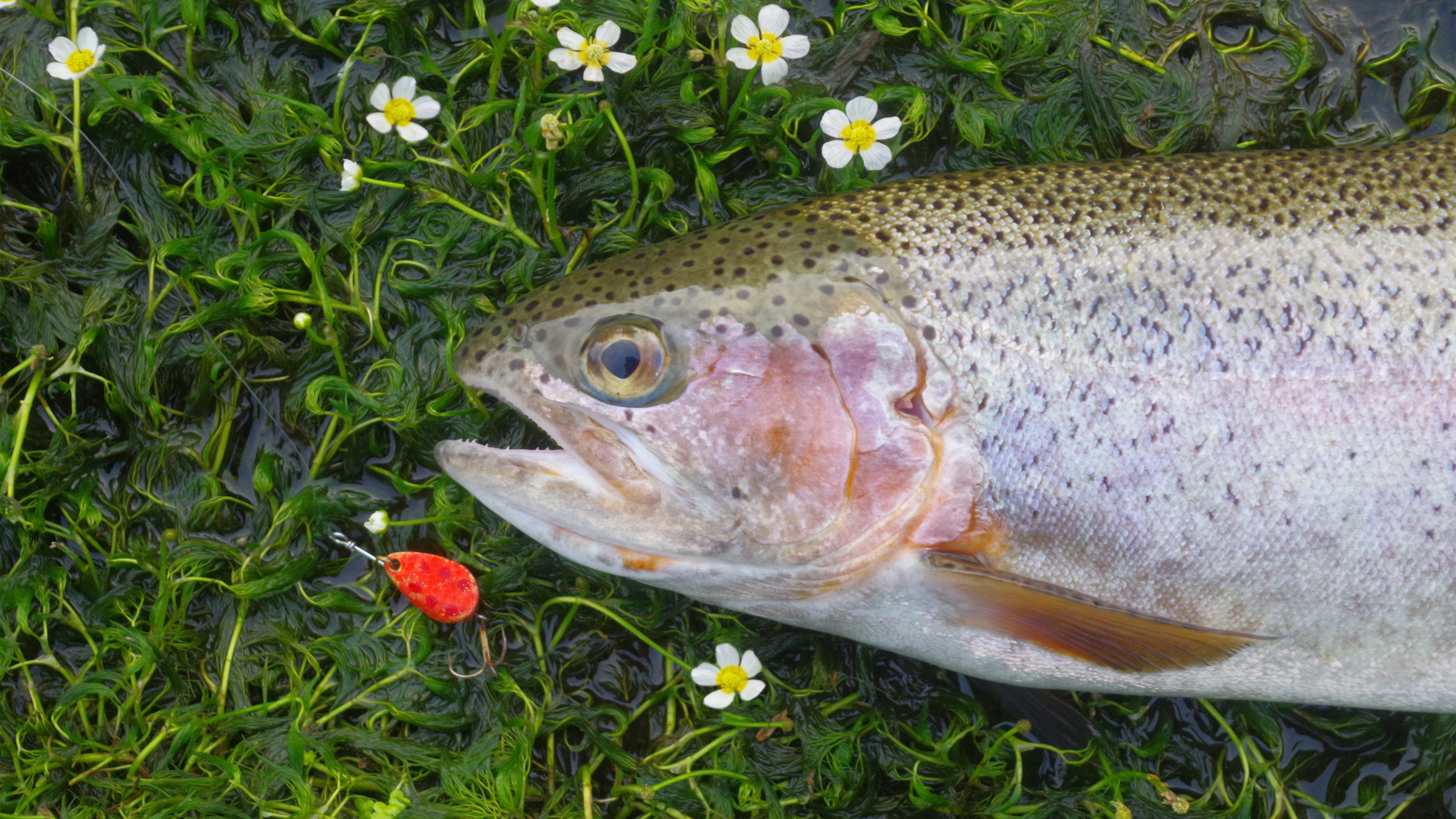 バイカモに踊る (ニジマス52cm、Bretton、梅花藻)